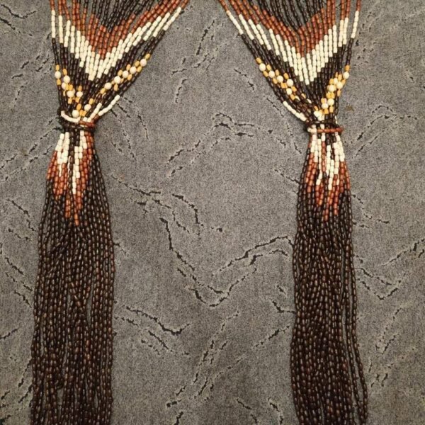 About the Beaded Curtain This wooden bead curtain with a beautiful geometric pattern combines handcrafted craftsmanship with eco-friendliness. It’s perfect