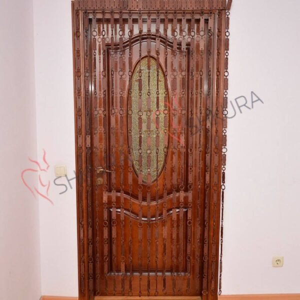 A curtain made of wooden beads on threads with a geometric pattern. Available in arched and full versions, it will make a stylish boho accent for your home, room, or patio.
