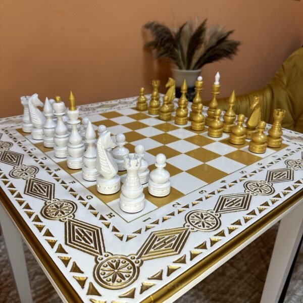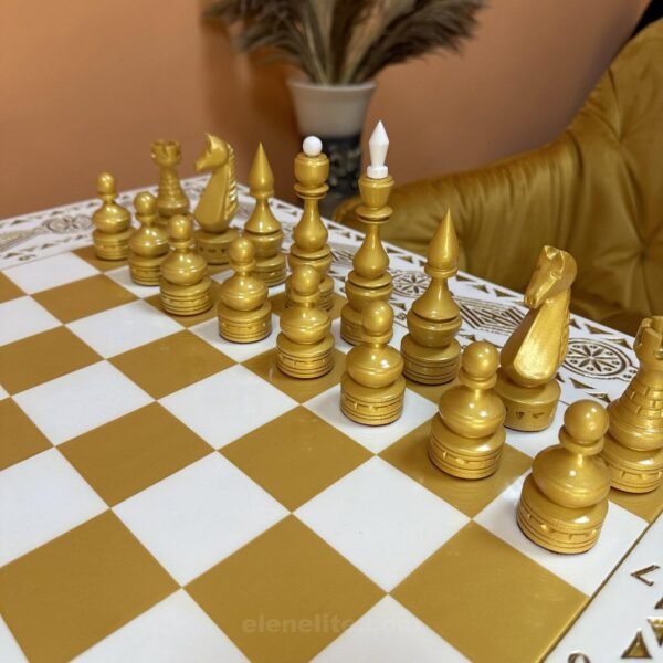 Handcrafted Chess pieces “Elite” Gold & White, Super glossy