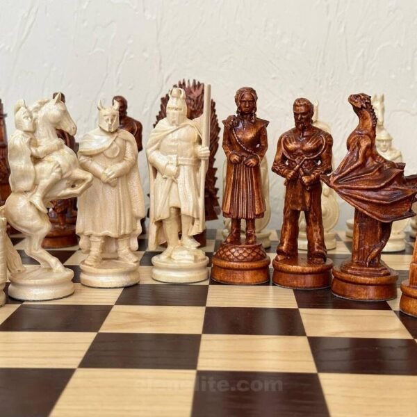 Wooden Chess pieces "Game of Thrones” + “Knights" Reddish brown | Beige color