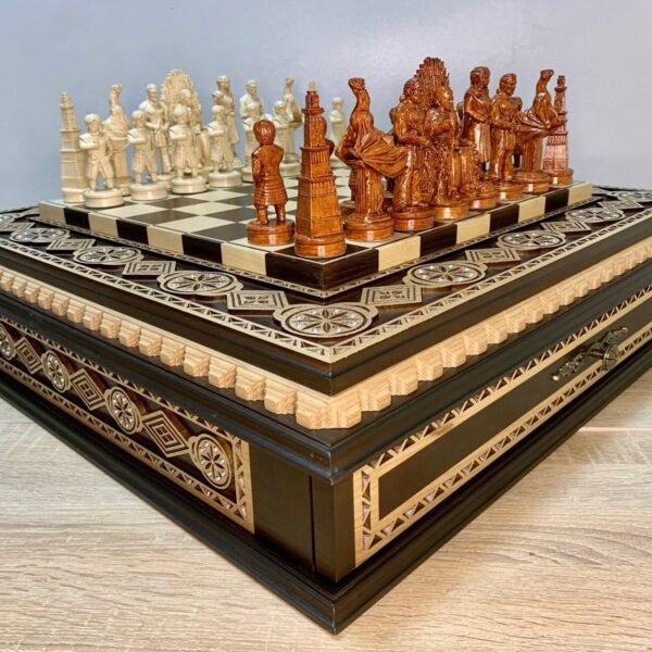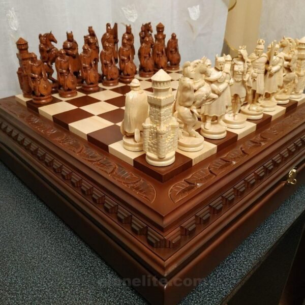 Chess Set: Chess Board with Storage + chess pieces “Knights” + “Cossacks”