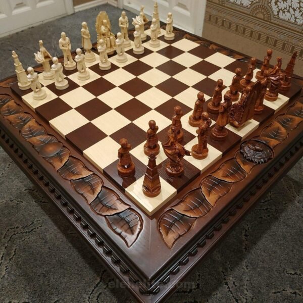 Wooden Chess Set: Table/Board "Lion Victory"