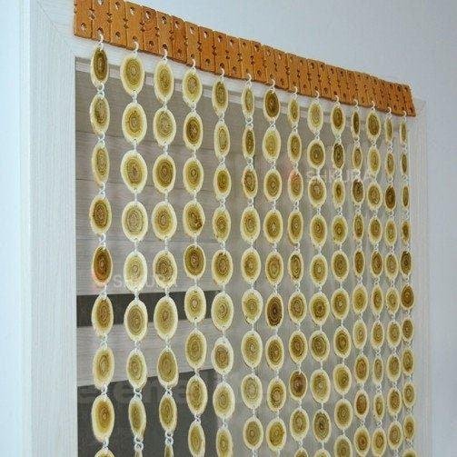 This handmade curtain made from natural wood slices is a stylish solution for your interior. Ideal as a door screen, curtain, or window or patio decor.