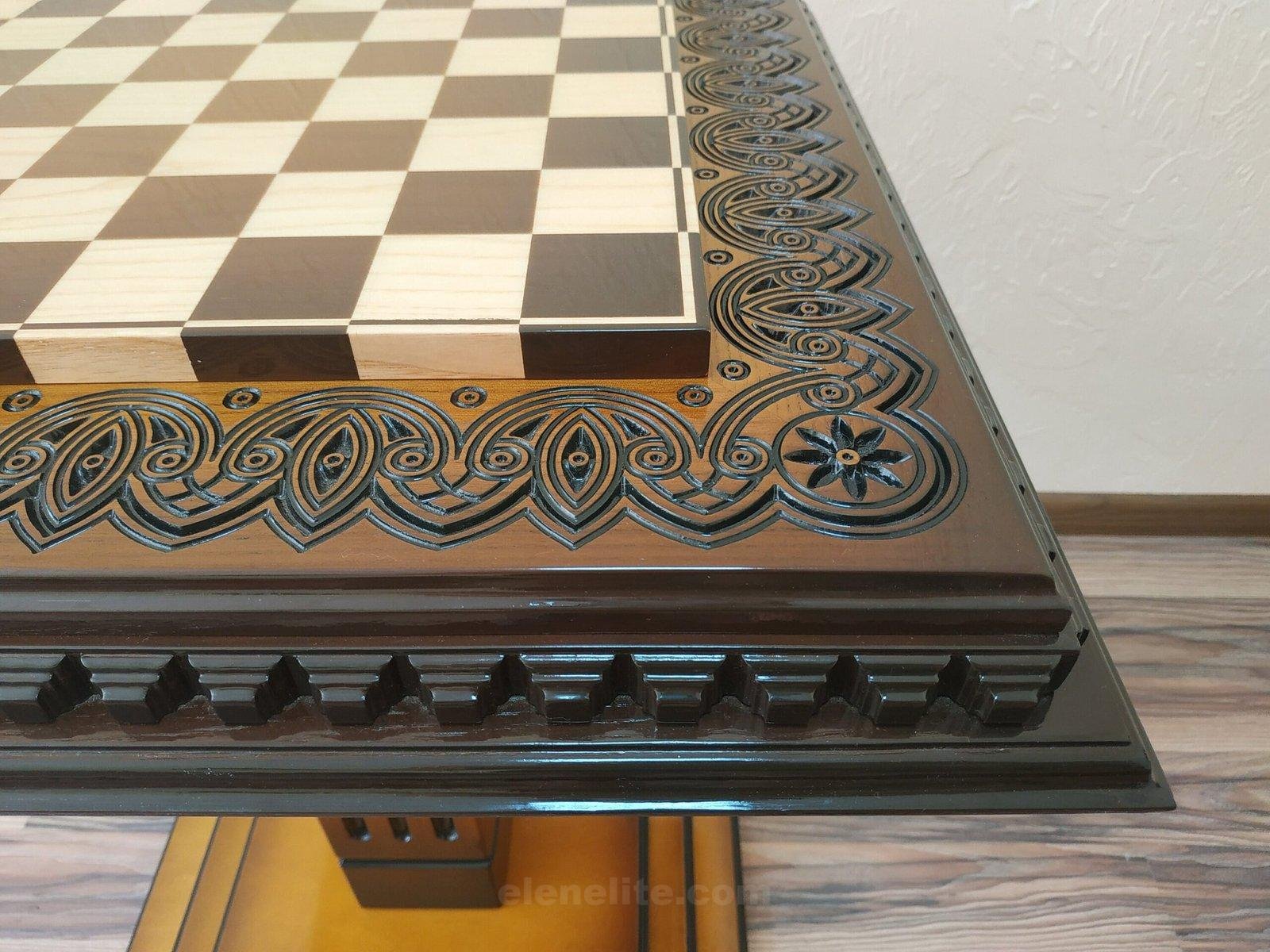 DESIGN: the chess board is decorated with carvings; exclusively designed by our “Elen Elite” craftsmen