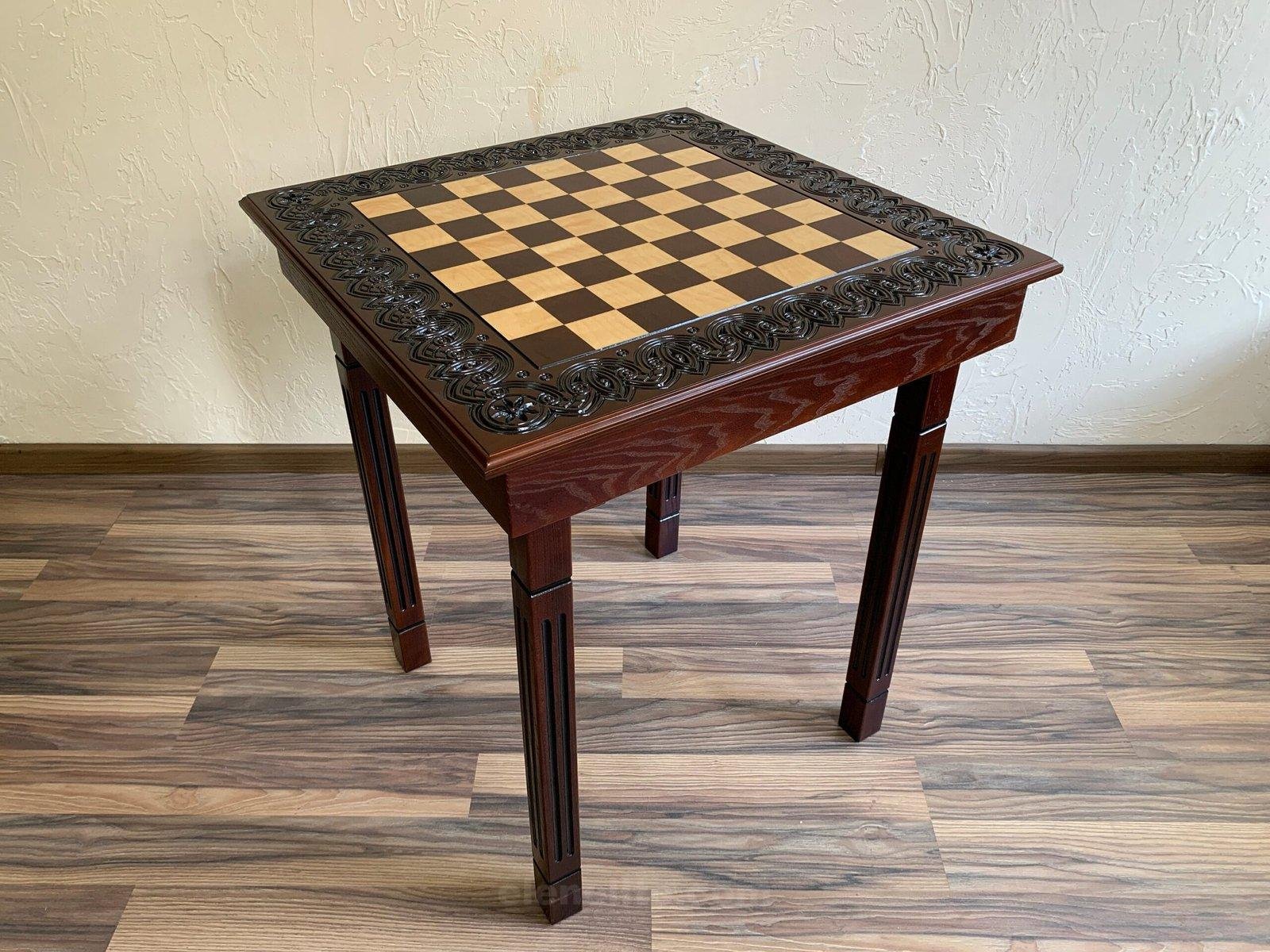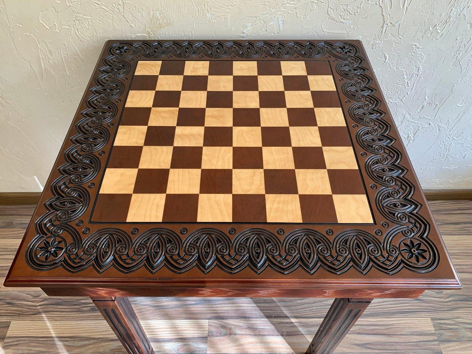 A classic four-legged table with a chessboard drawer. The hinged design allows for easy storage of the pieces, while the velvet-lined drawers preserve their appearance.