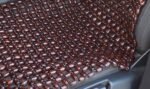 Cover made from round wooden beads which are clamped between a solid scaffold. Fastened firmly to the front seat of the car under the headrest. It is very convenient to use in summer weather. It relieves fatigue while doing light massage. A particular advantage is the fact that between the cover and the seat and back ventilation is the driver and passengers do not sweat.