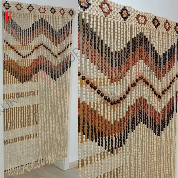 An elegant curtain made of wooden beads on strings. A great choice for doors, windows, or as a subtle space divider.