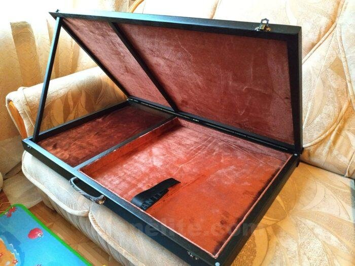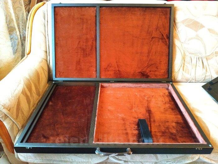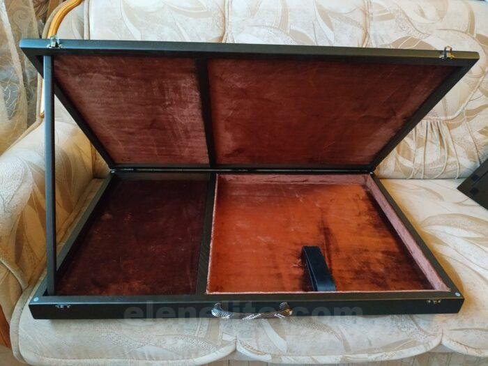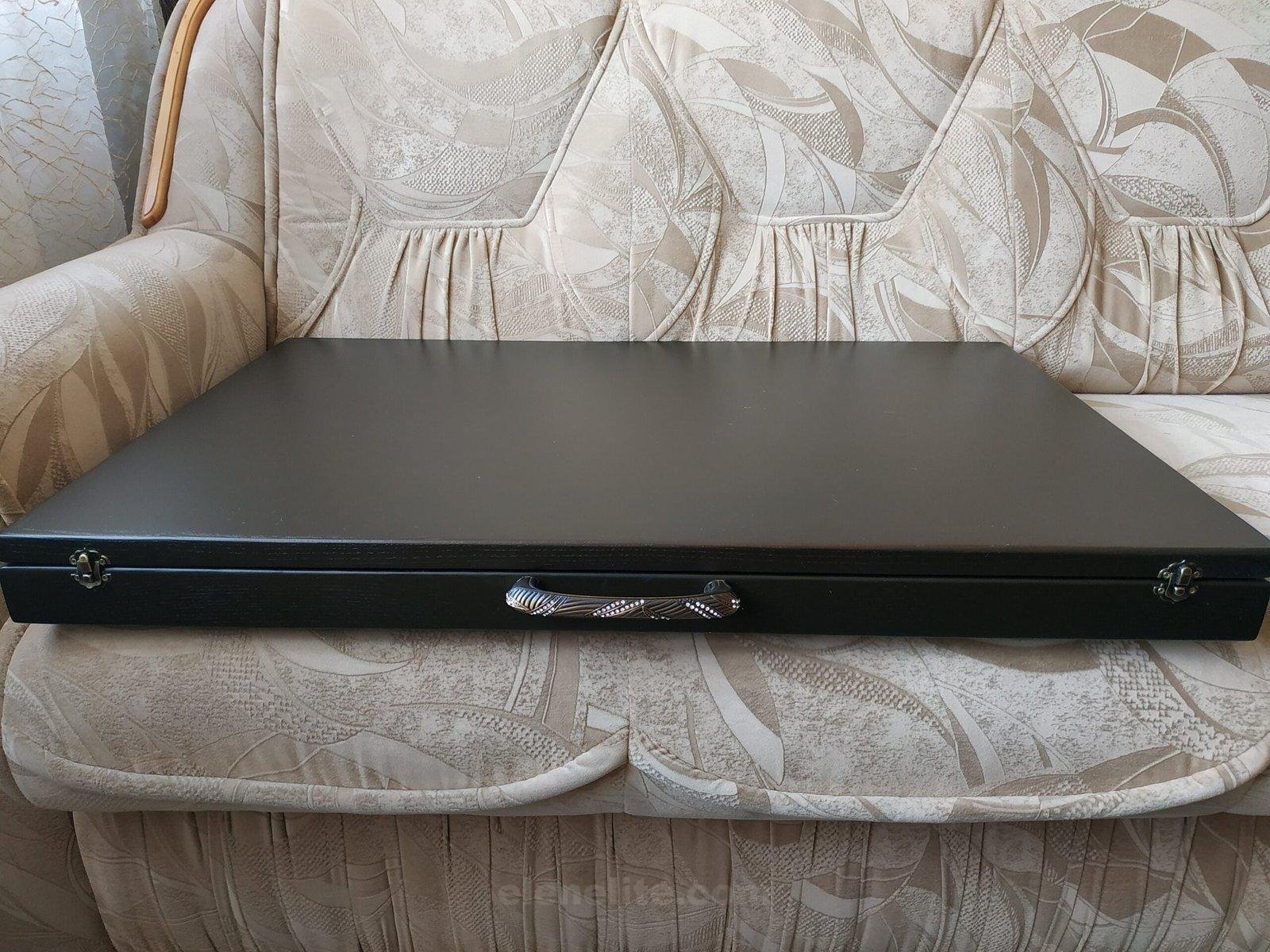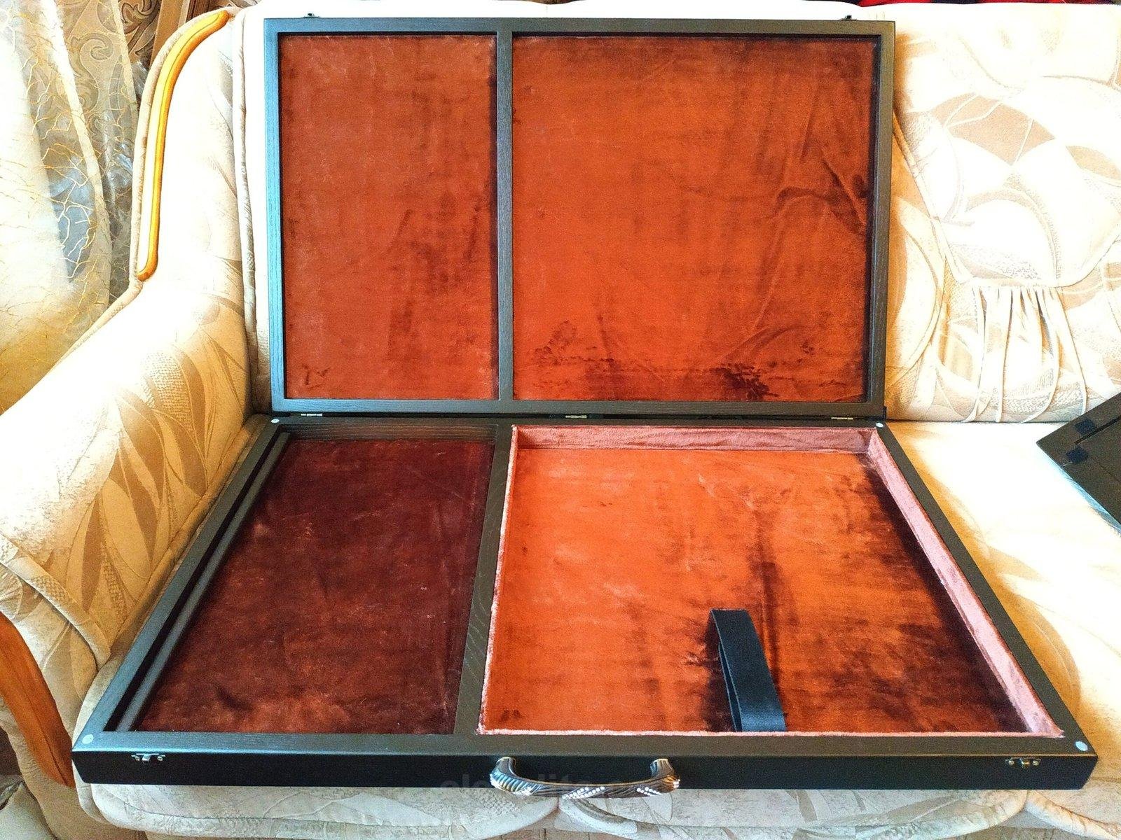 In this listing you can buy only box without chess board! The board in the photo is shown as an example.
