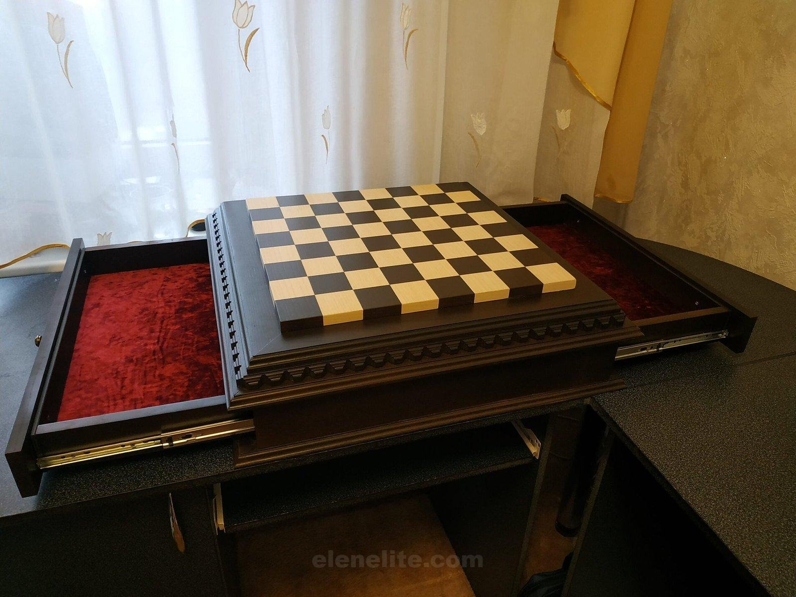DESIGN: the board is equipped with 2 drawers for storing chess pieces; exclusively designed by our “Elen Elite” craftsmen.