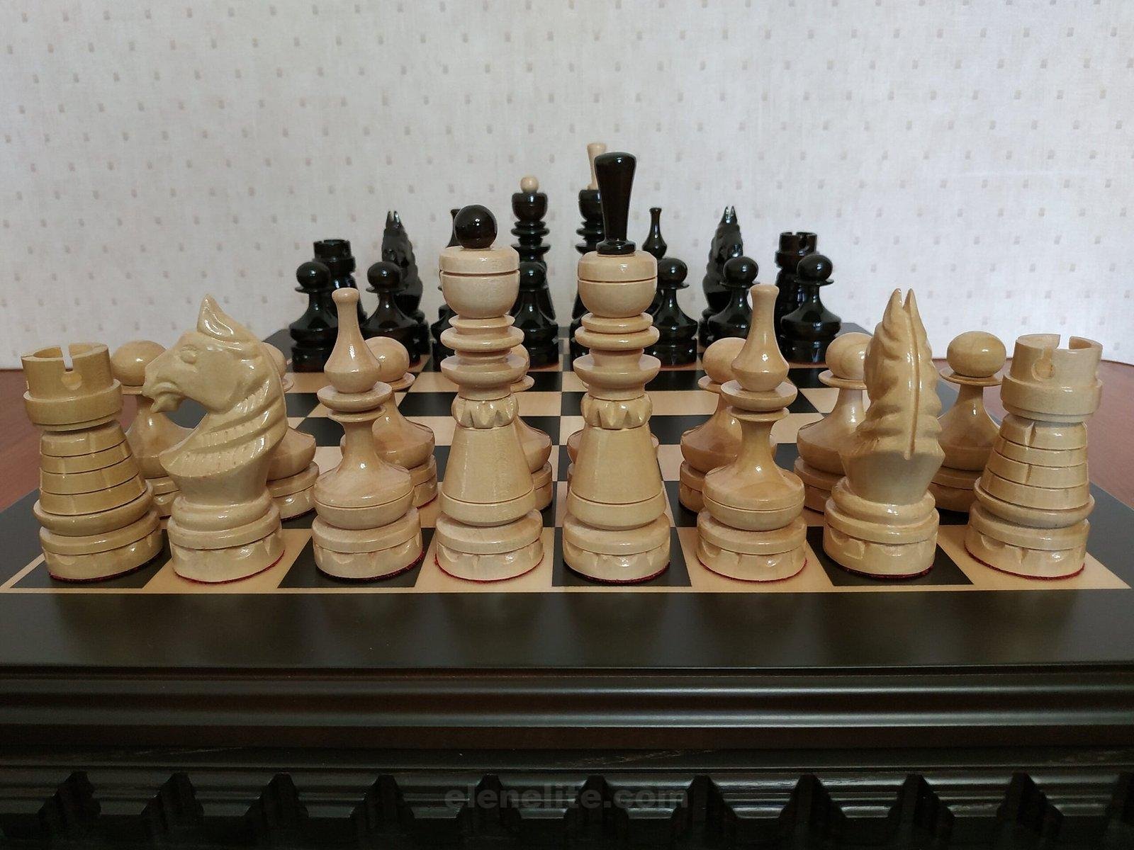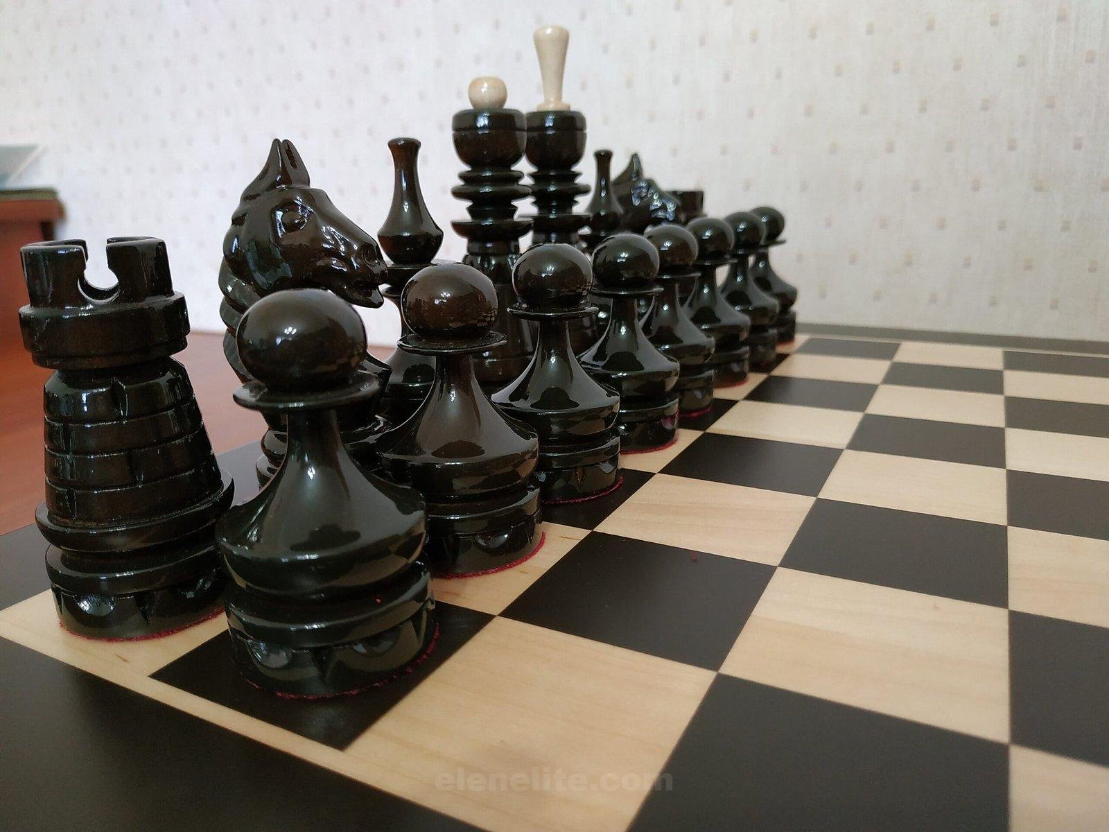 Wooden Chess pieces "Classic Luxe" Black | Beige Super glossy