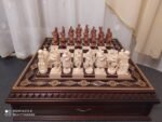 Chess set “Battle for Kings”: Chess Board with two Drawers Decorated with beads + pieces “Knights & Cossacks”