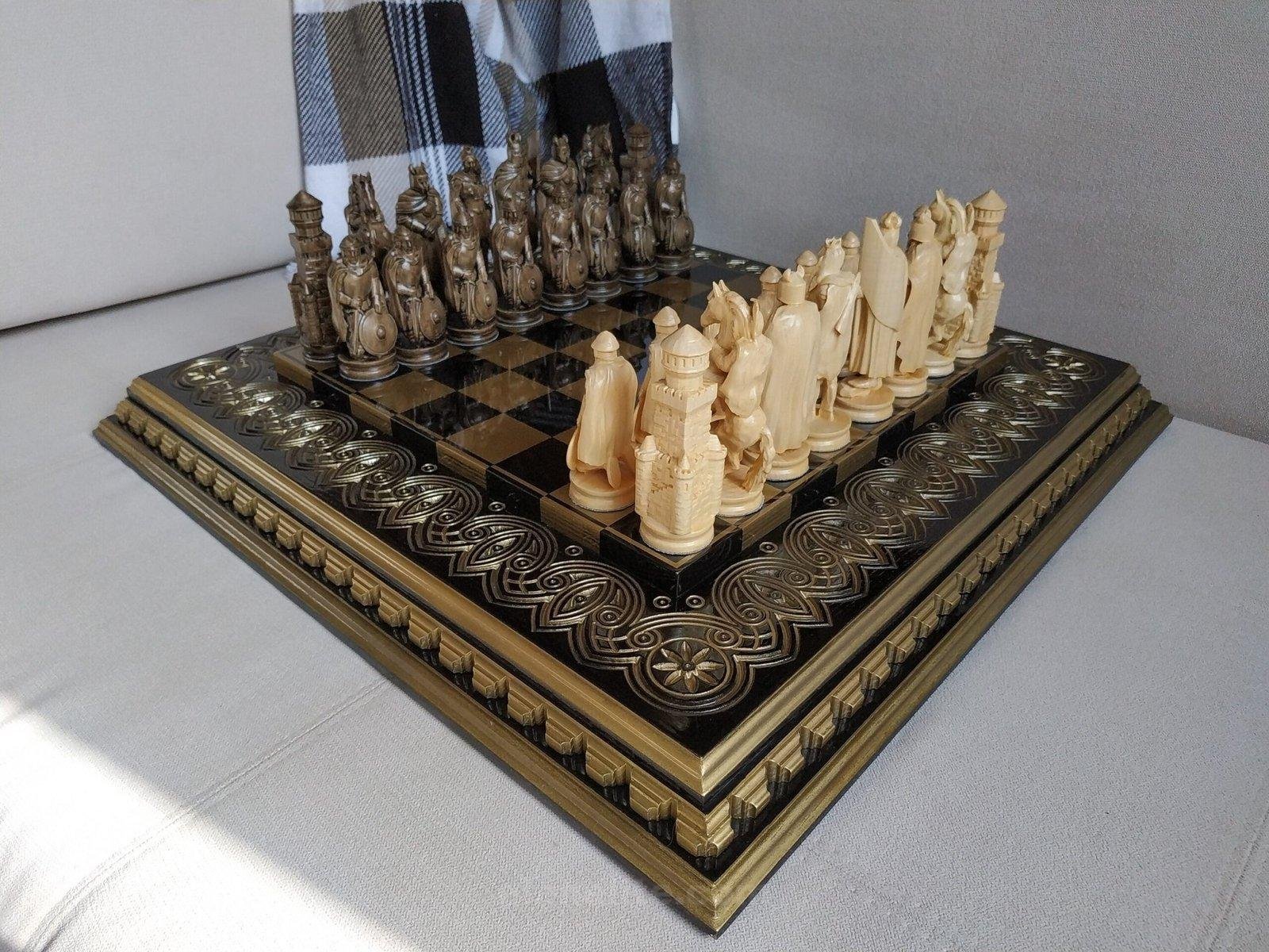 DESIGN: the chess board is decorated with carvings; the chess pieces are made in the style of Knights; exclusively designed by our “Elen Elite” craftsmen.
