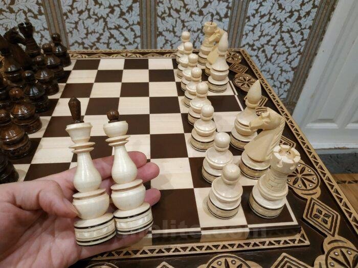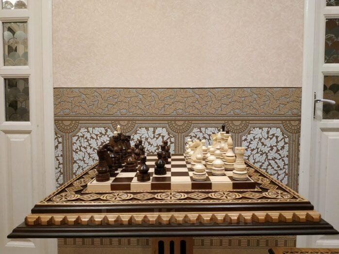 DESIGN: the chess board is decorated with beads; the chess pieces are made in classic design; exclusively designed by our “Elen Elite” craftsmen.