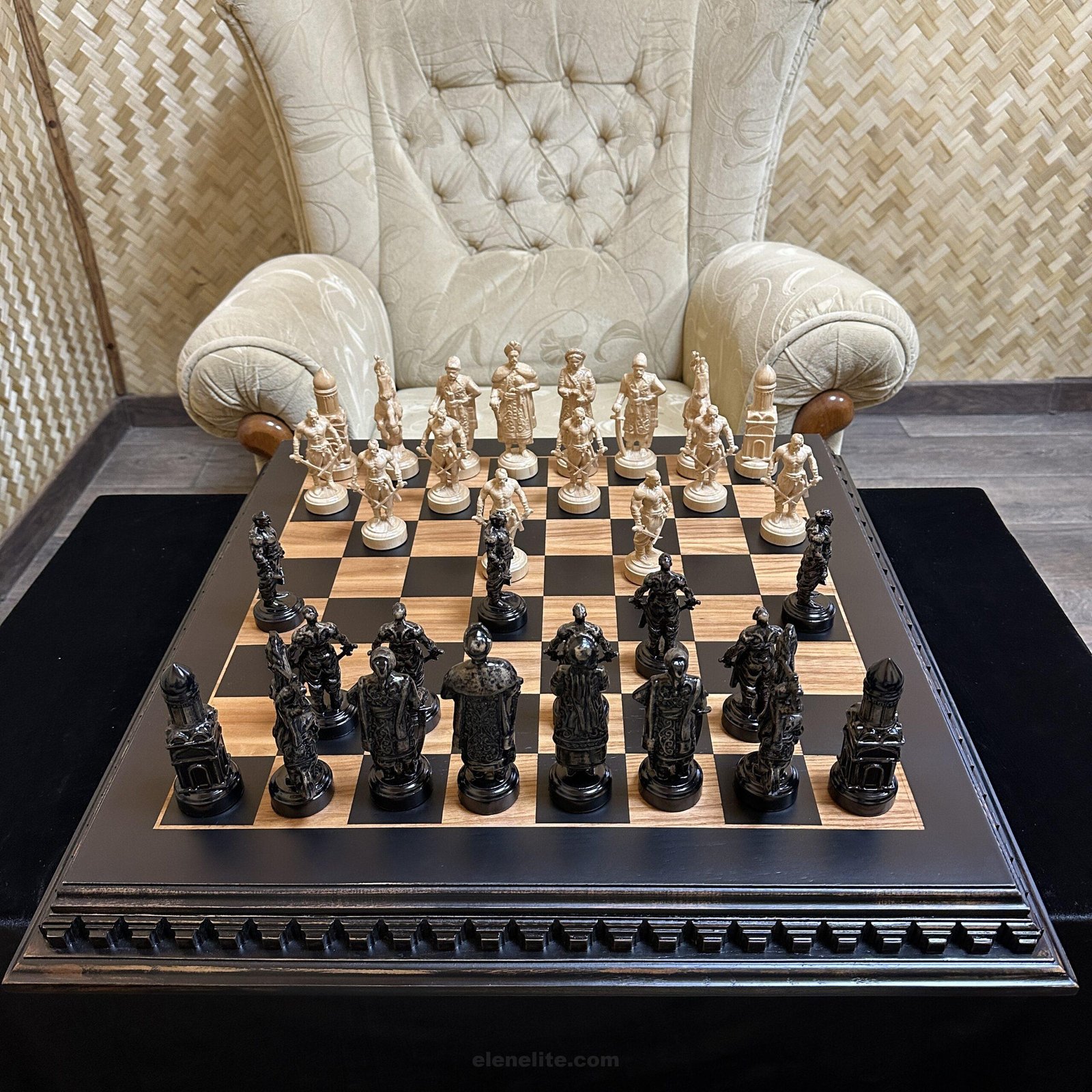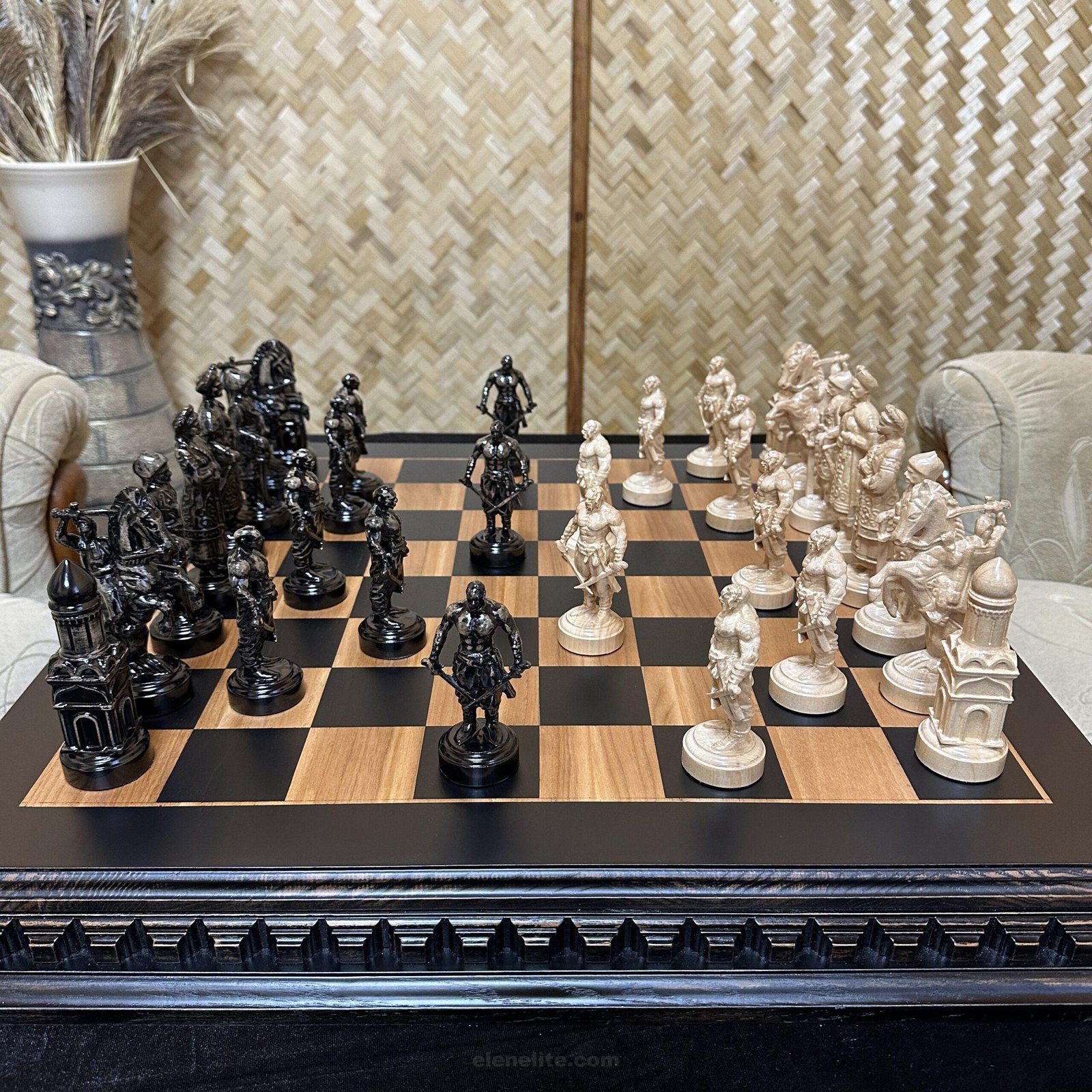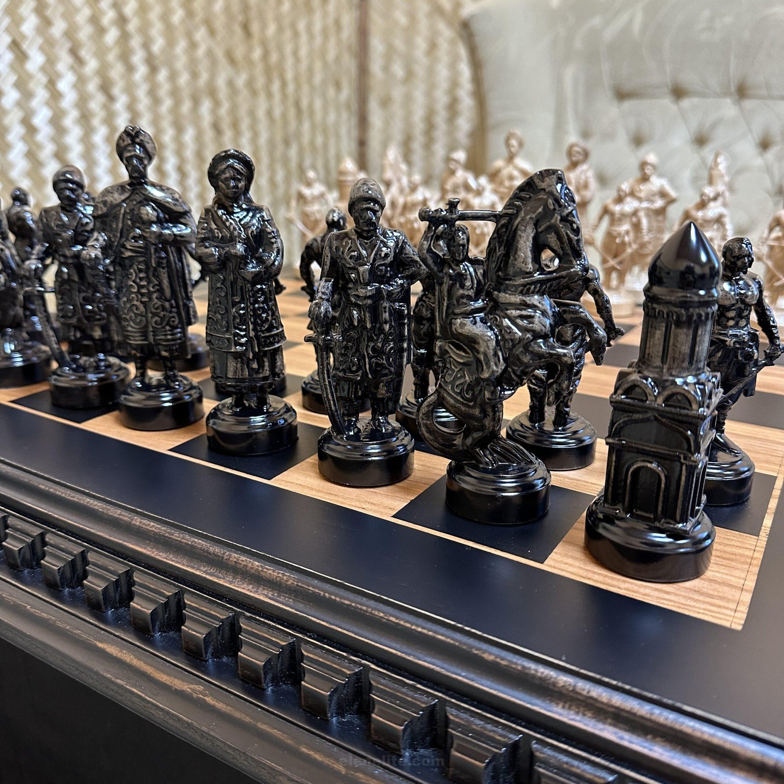 Chess set: Chess board “Old Luxury” + chess pieces “Cossacks”, vintage style