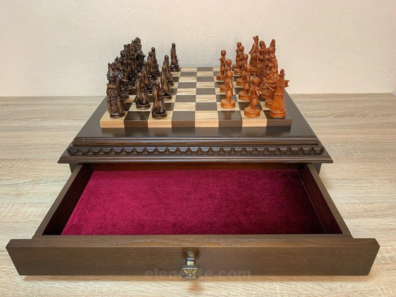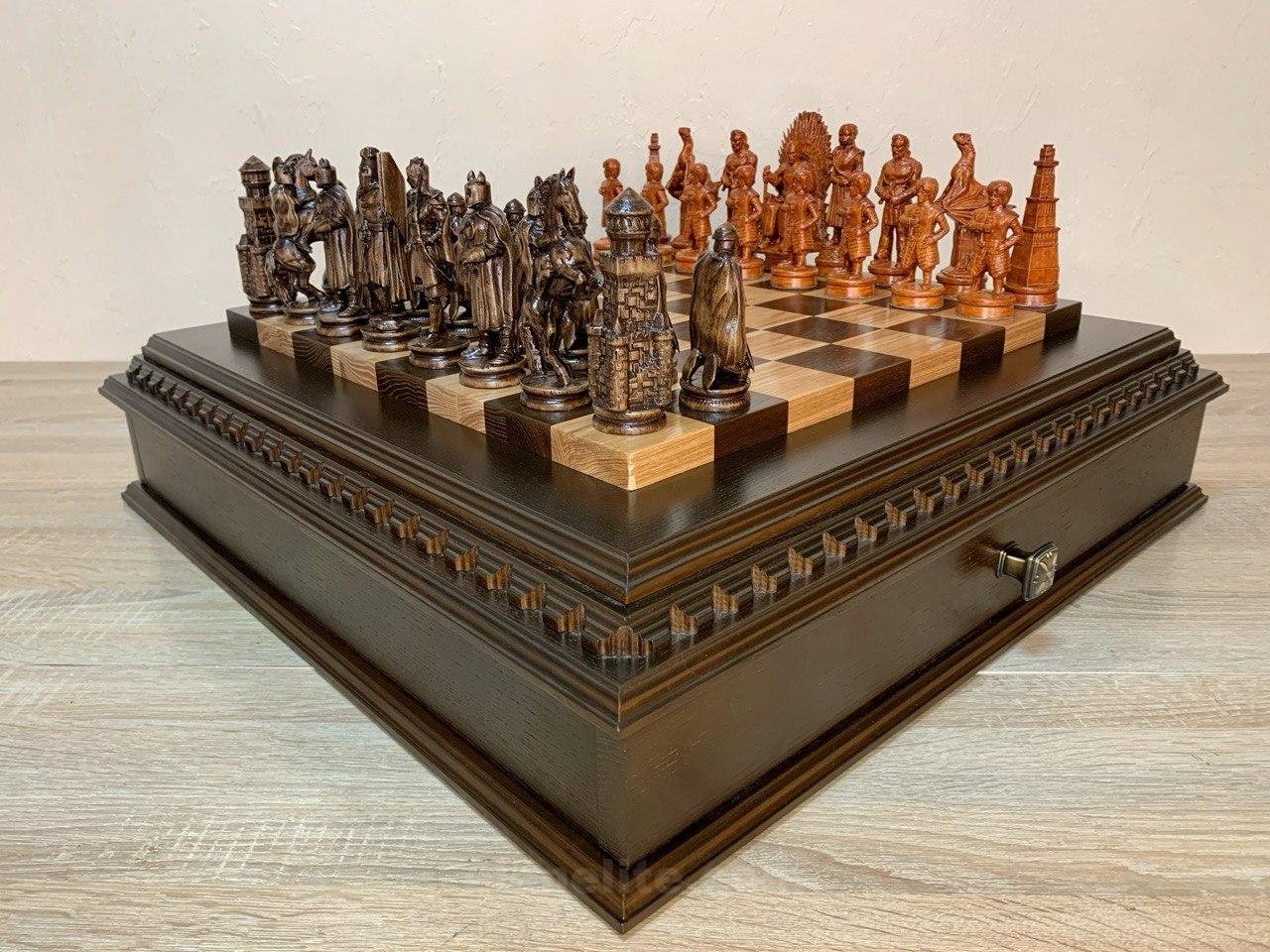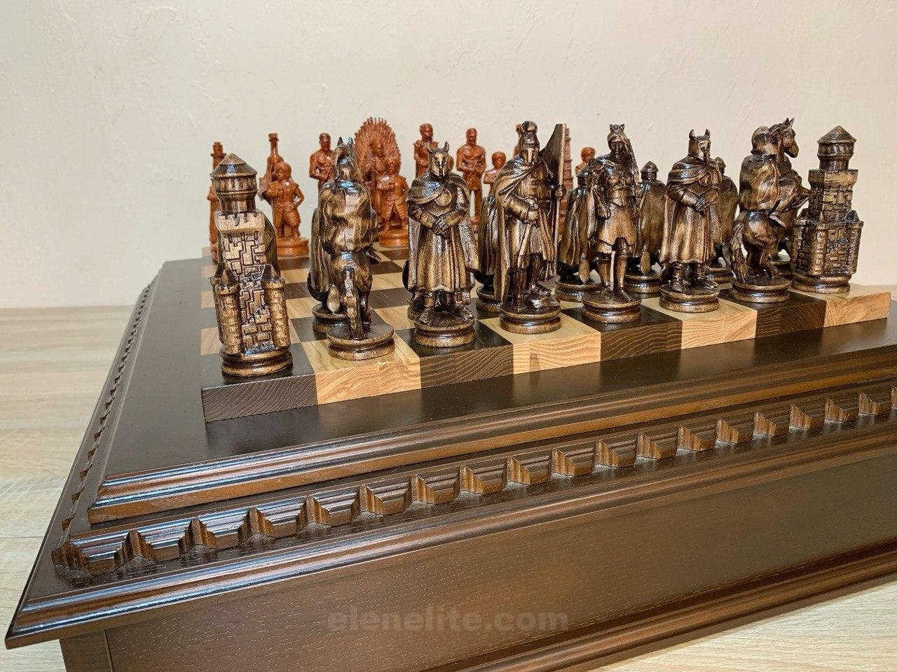 Chess set: Multifunctional Chess Board with 2 Drawers + pieces “Battle of Thrones & Knights”