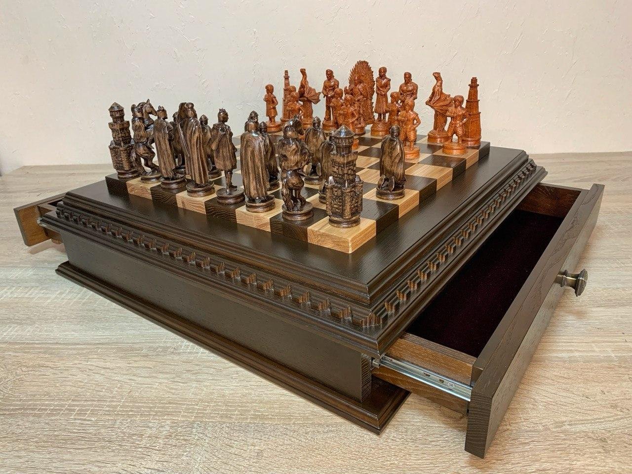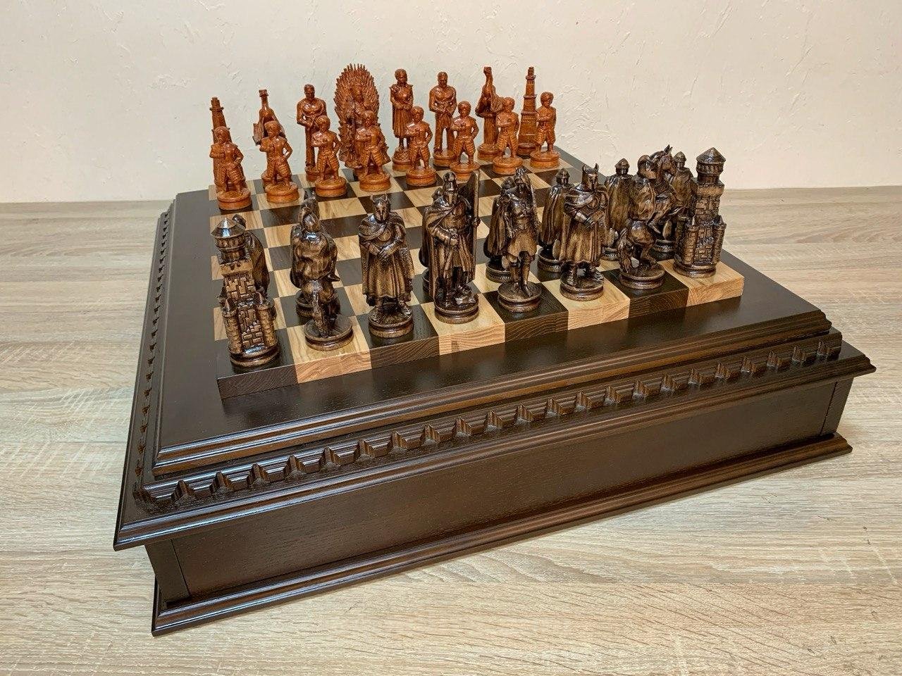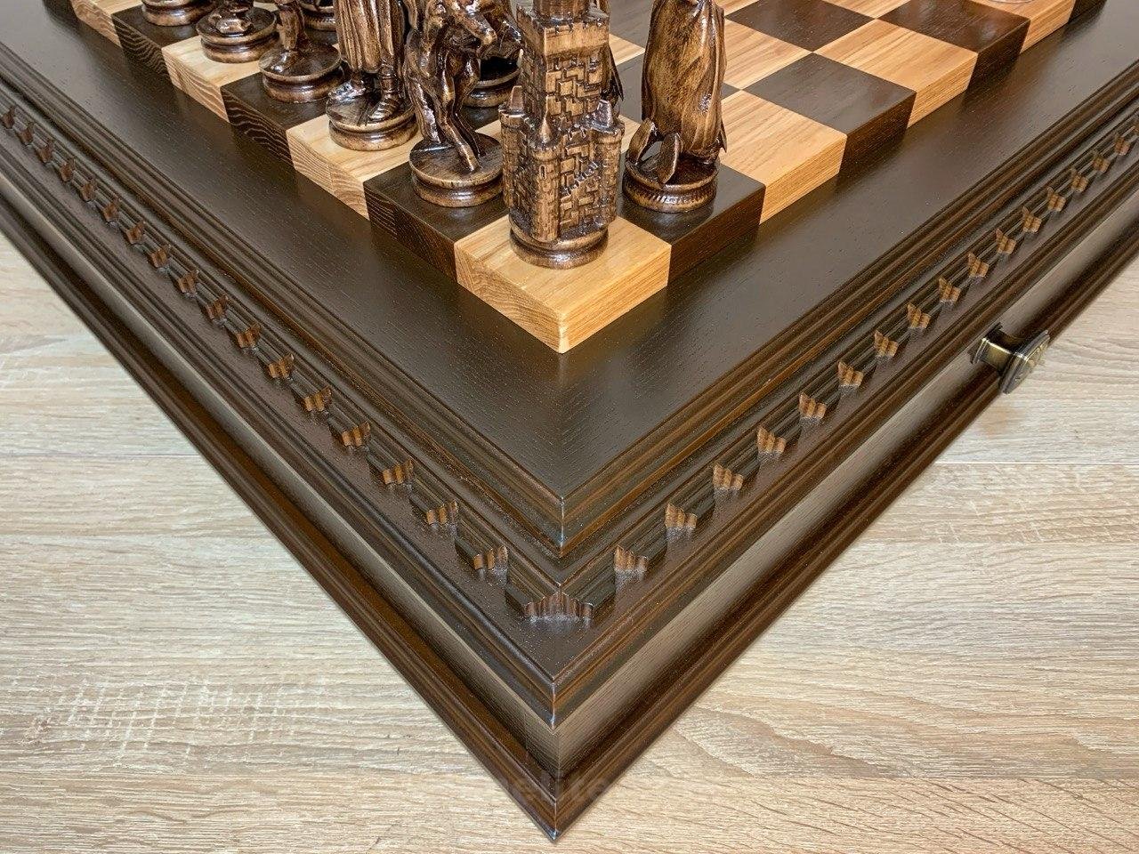 Chess set: Multifunctional Chess Board with 2 Drawers + pieces “Battle of Thrones & Knights”