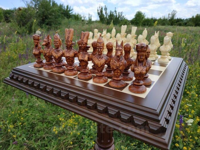 DESIGN: the table is made in a classic style; the chess pieces are in the form of Egyptian pharaohs; exclusively designed by our “Elen Elite” craftsmen