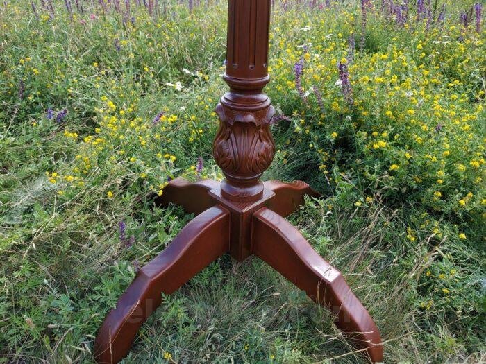 An elegant single-leg ash table in a classic dark brown style. It includes unique chess pieces inspired by Ancient Egyptian culture: pharaohs, gods, Anubis, and other highly detailed symbolic images.