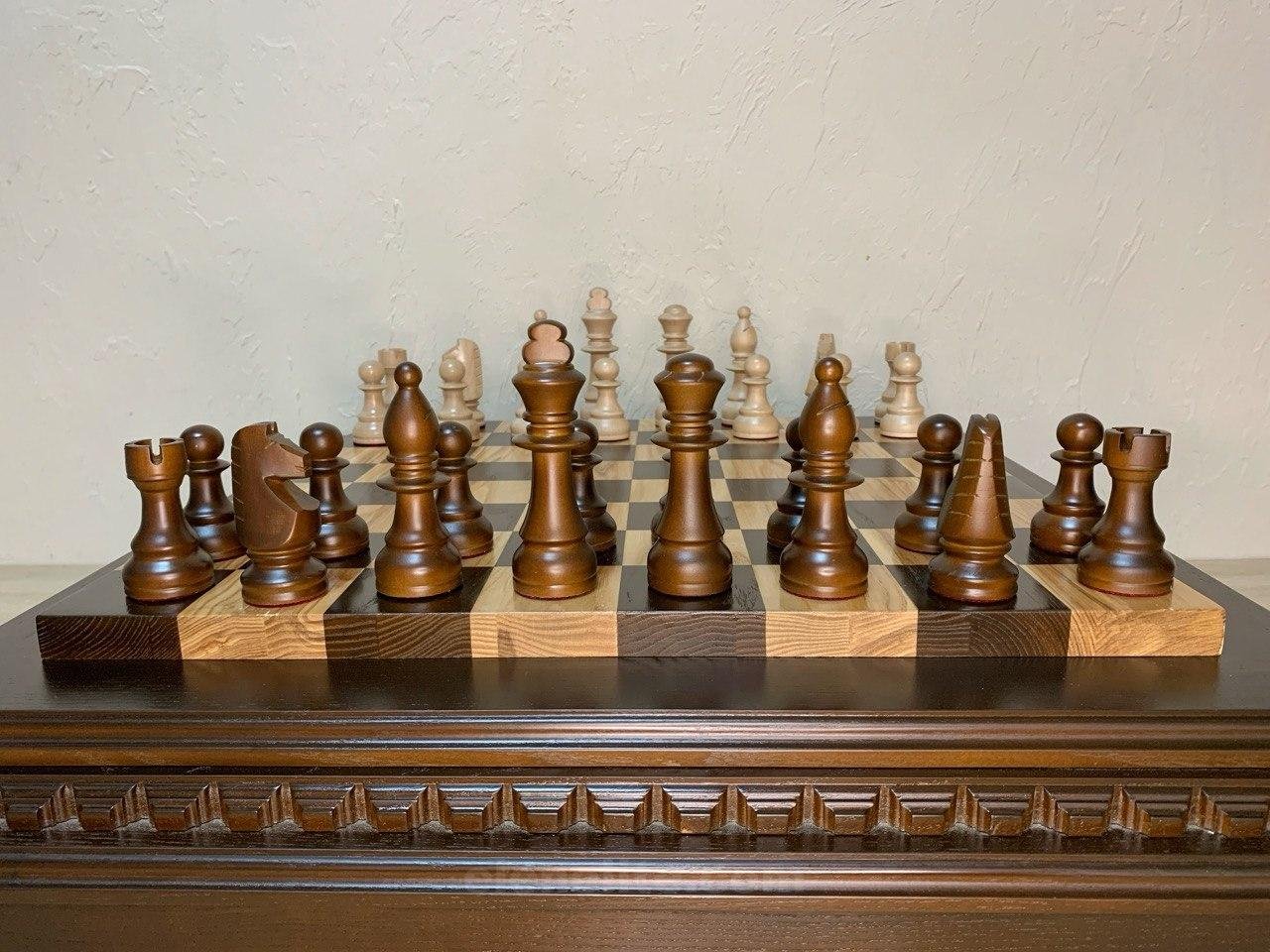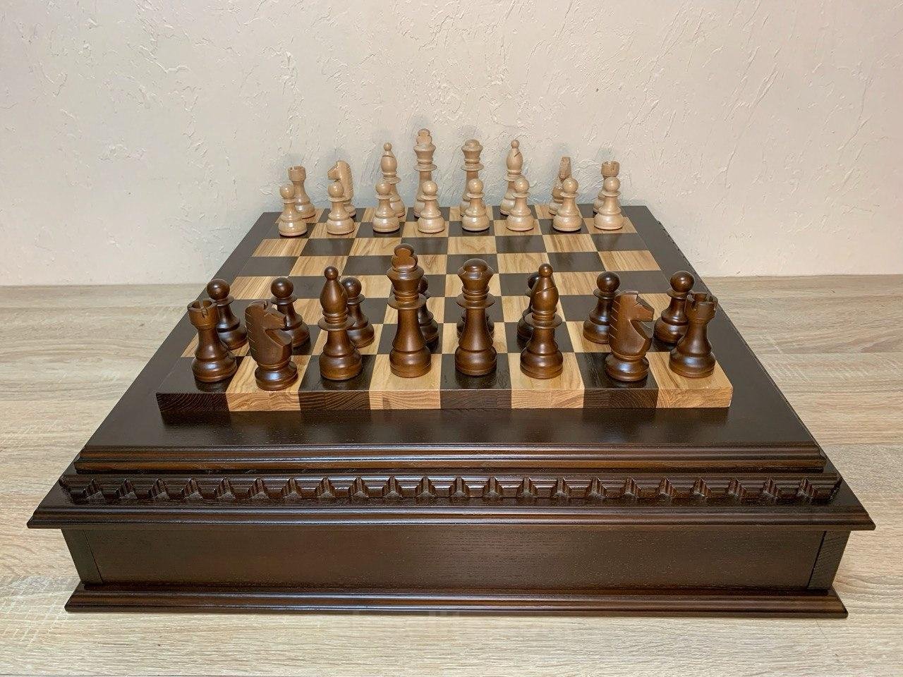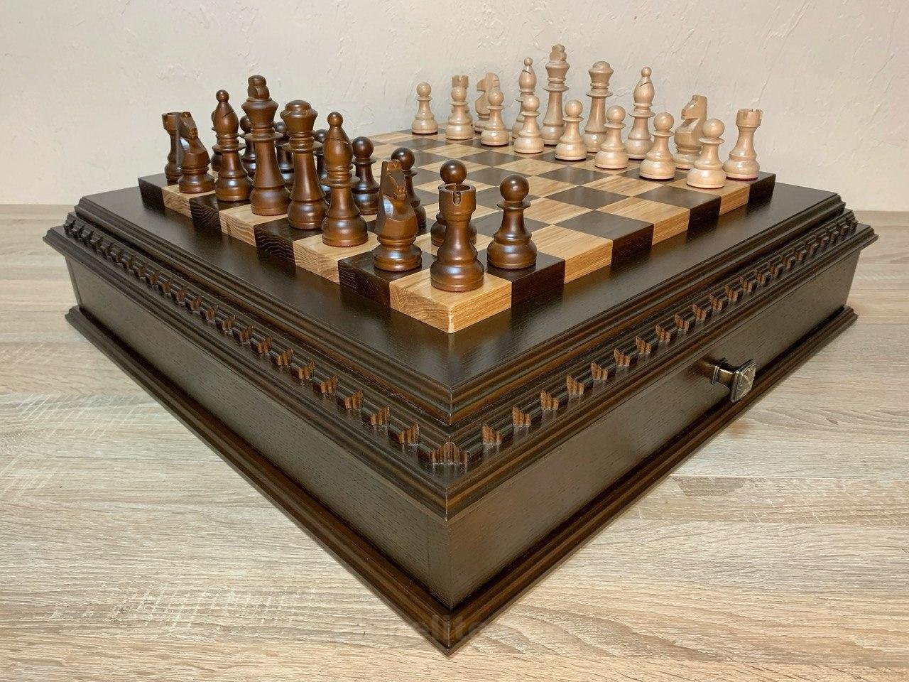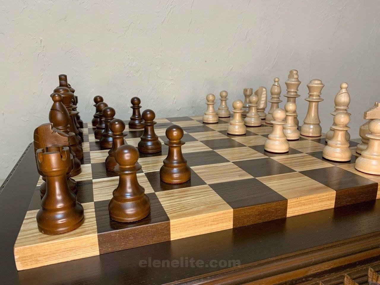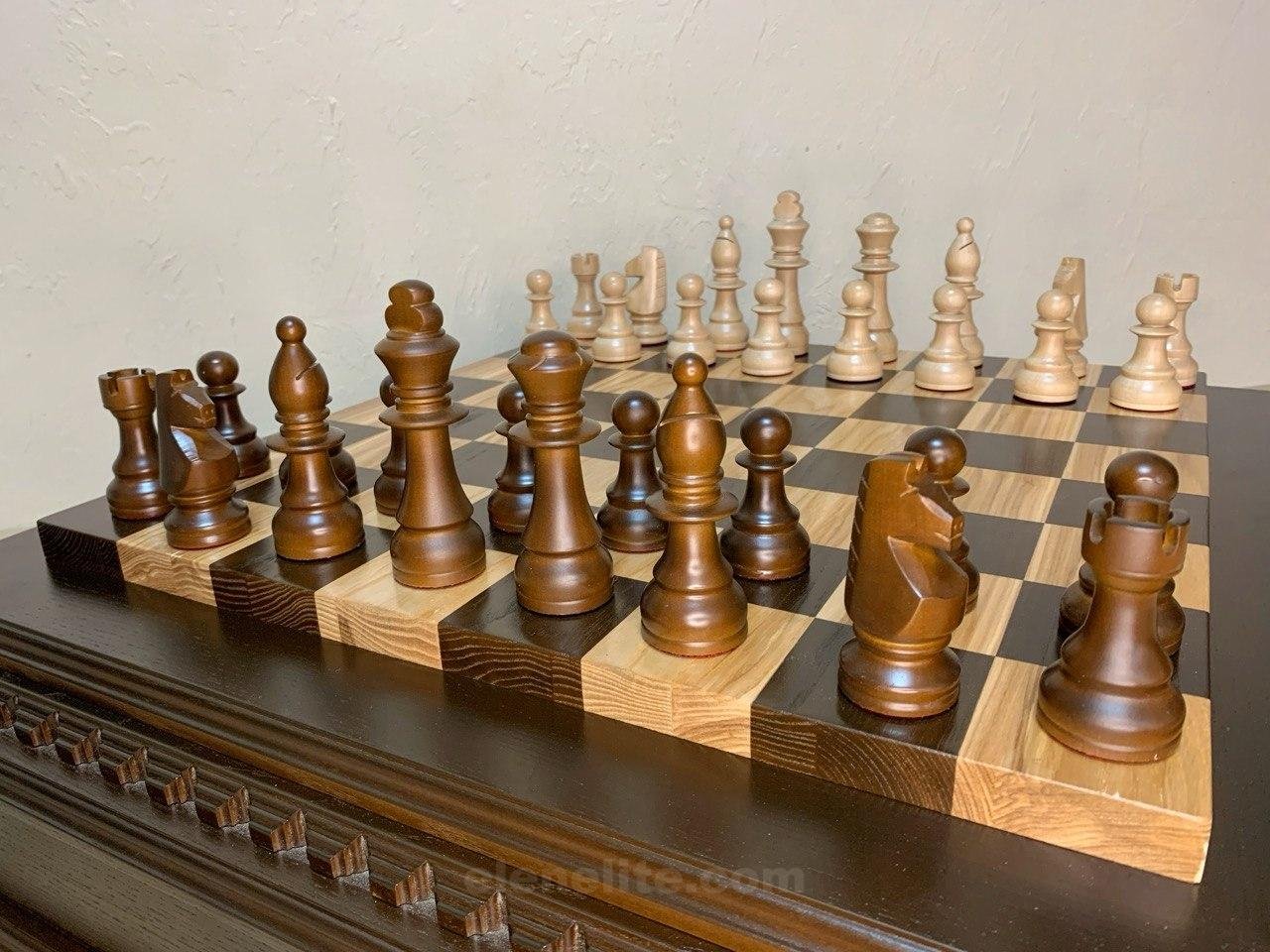 DESIGN: the chess board is equipped with 2 drawers for storing chess pieces; the chess pieces are made in a classic design; exclusively designed by our “Elen Elite” craftsmen.