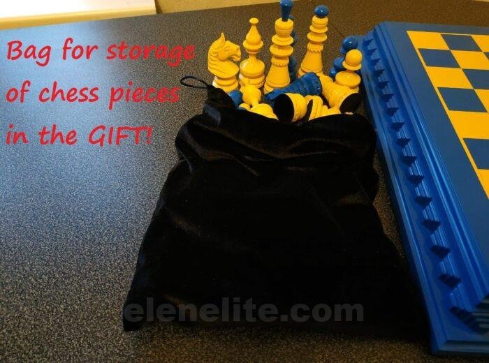 Chess set "NAVY" Wooden Chess Board with Blue & Yellow Pieces “Classic Luxe”