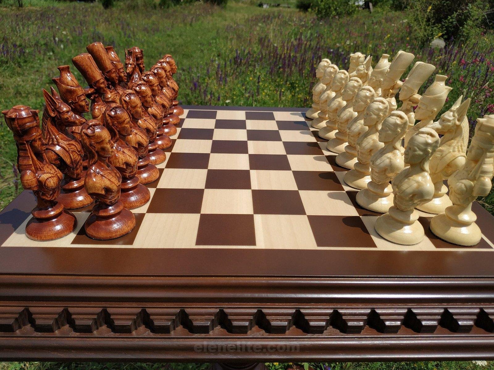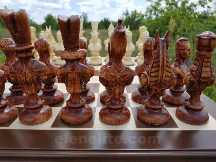 DESIGN: the board is made in a classic style; the chess pieces are in the form of Egyptian pharaohs; exclusively designed by our “Elen Elite” craftsmen.