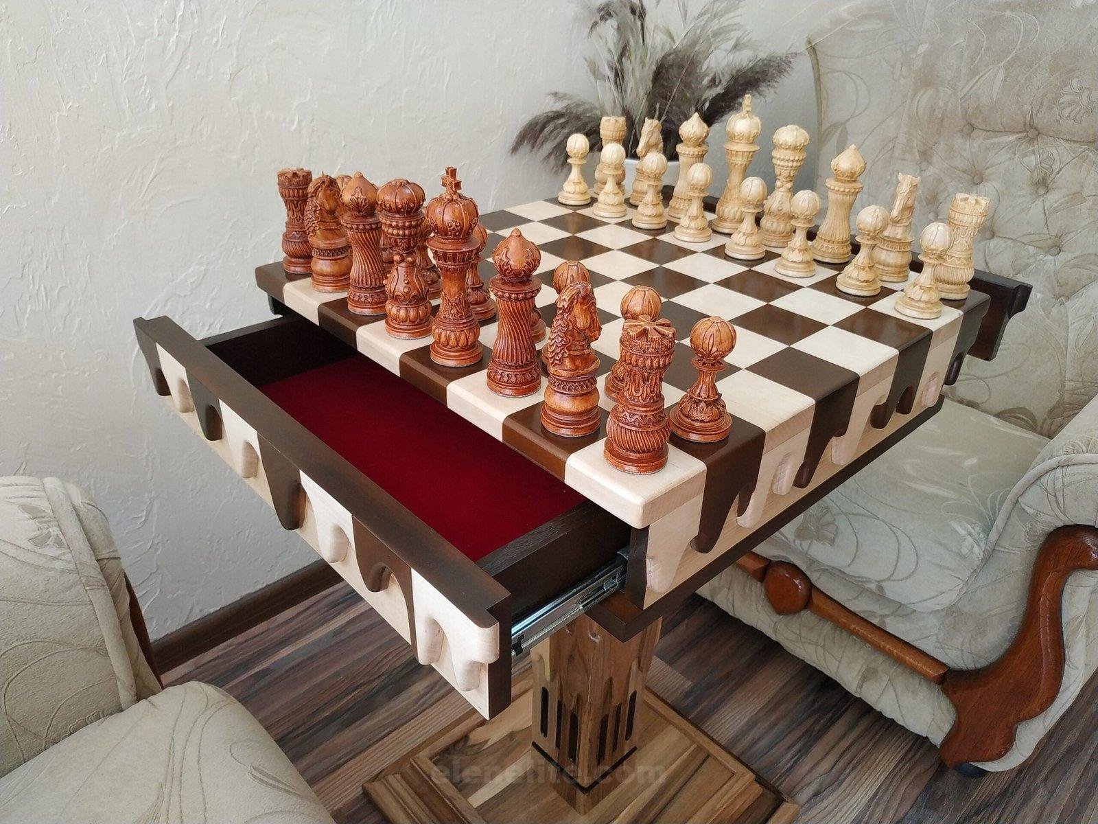DESIGN: the chess board is equipped with 2 drawers for storing chess pieces; 32 chess pieces in classic style; exclusively designed by our “Elen Elite” craftsmen