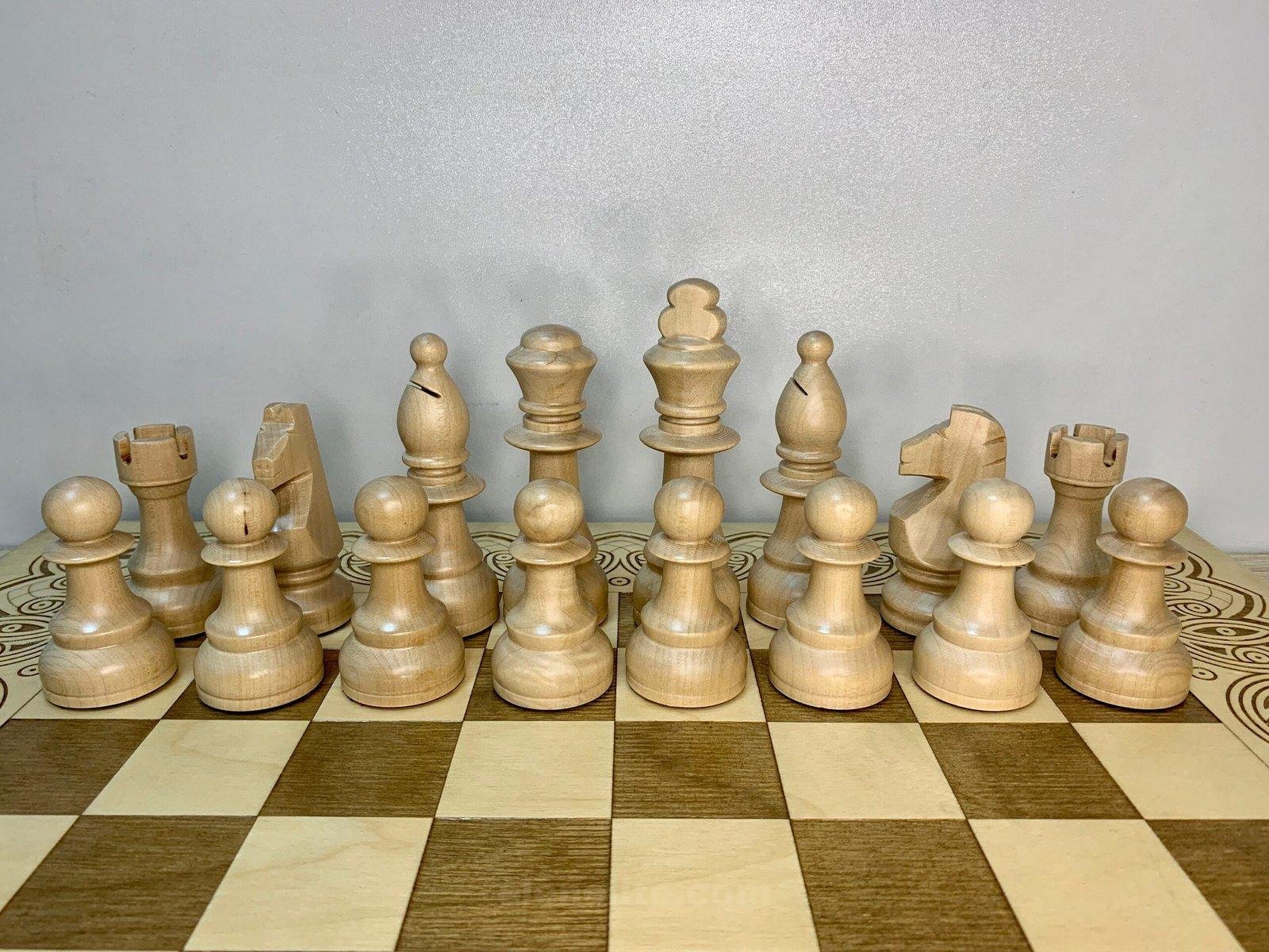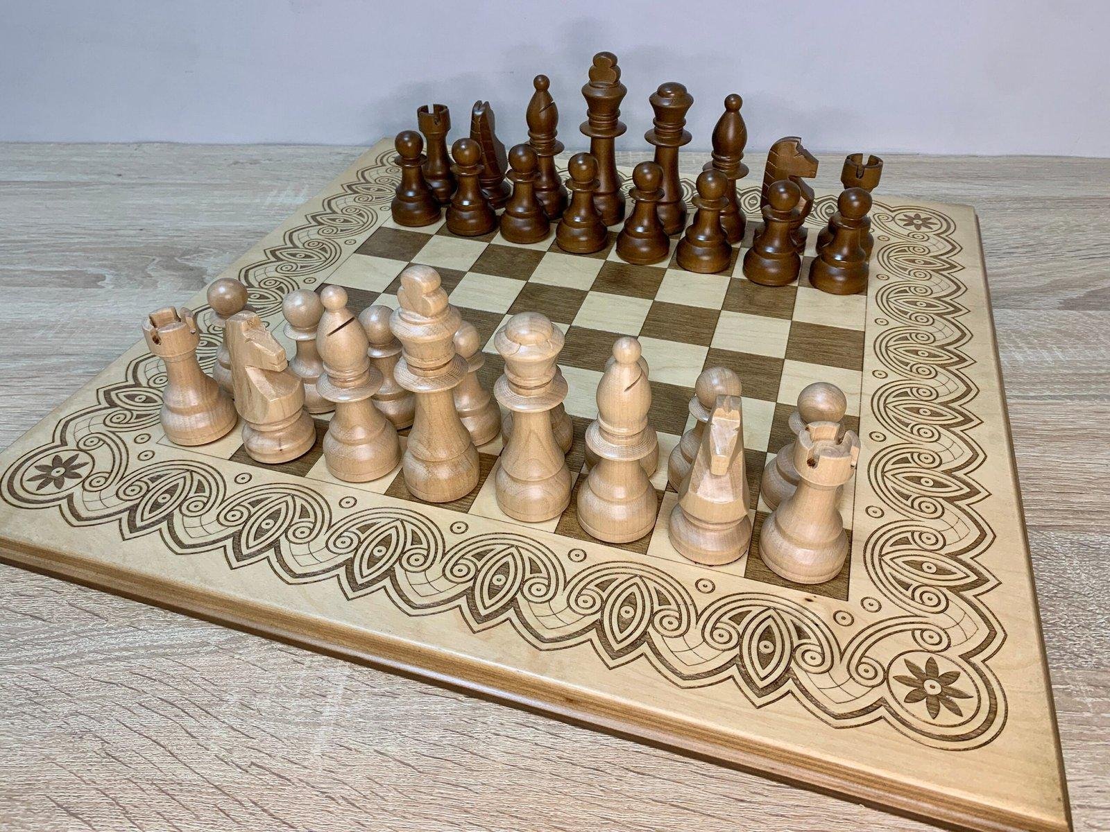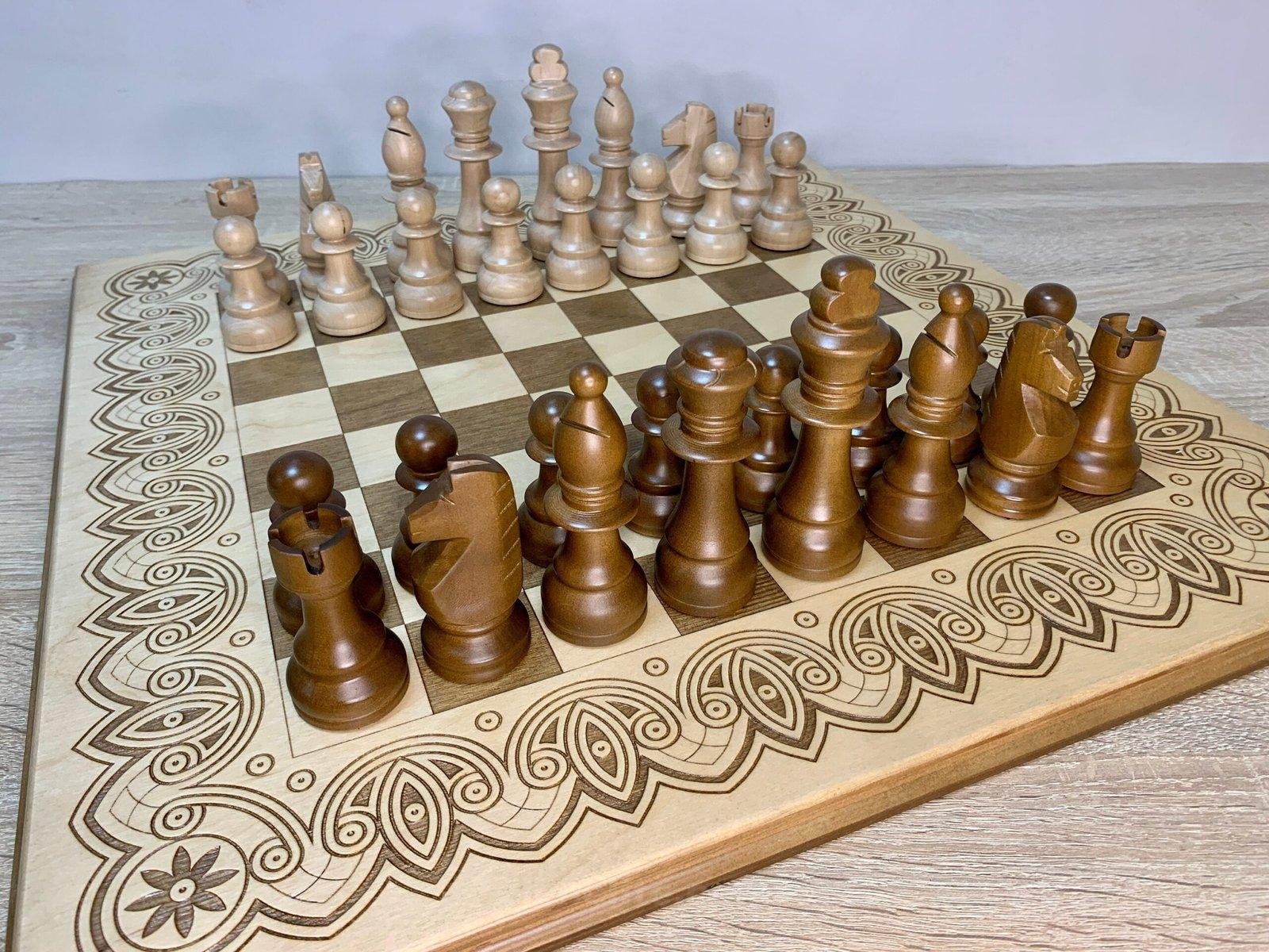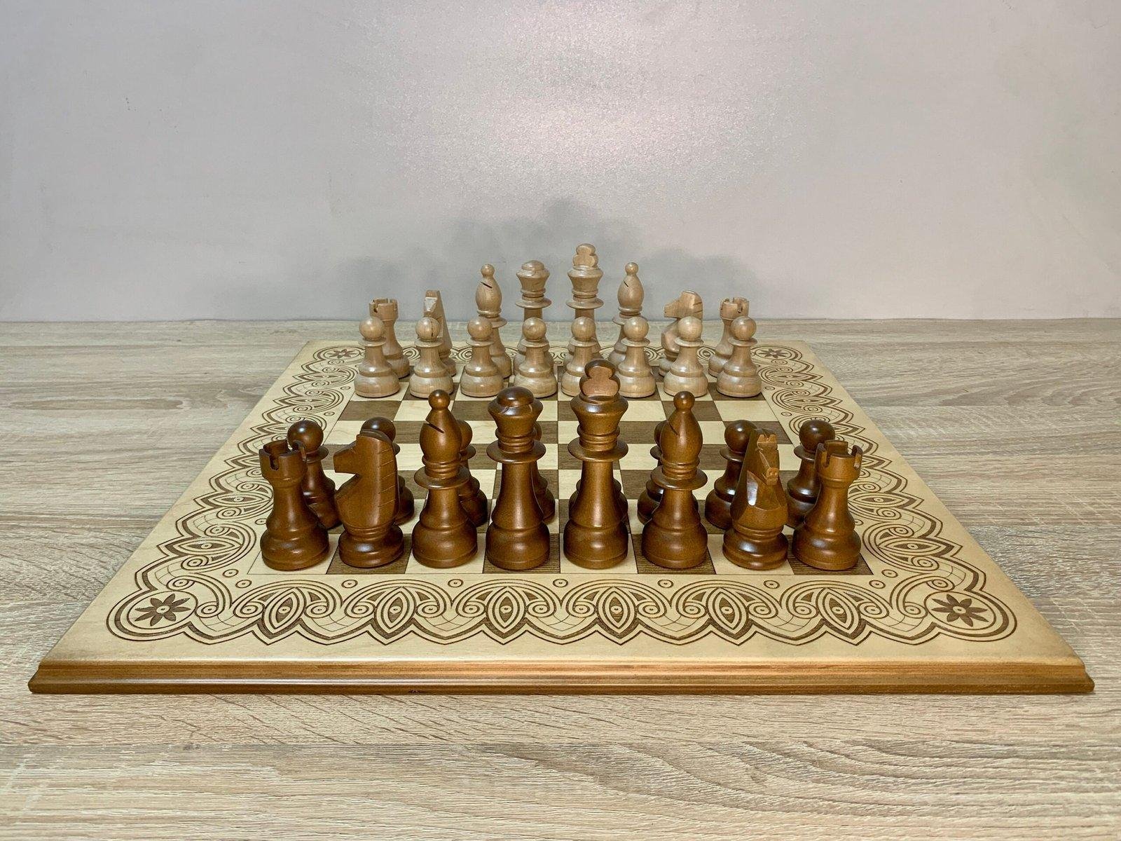 This chess set is designed for connoisseurs of natural materials and harmony in details. The chess board is made of ash and is made in a light beige shade, which emphasizes the natural beauty of the wood. Fine carving and visible wood structure make it unique, and the oil-wax coating preserves the naturalness of the material, protects the surface and makes the product environmentally friendly and safe. The pieces are carved from maple in a classic design. Their strict shape and warm wood shade perfectly match the natural board.