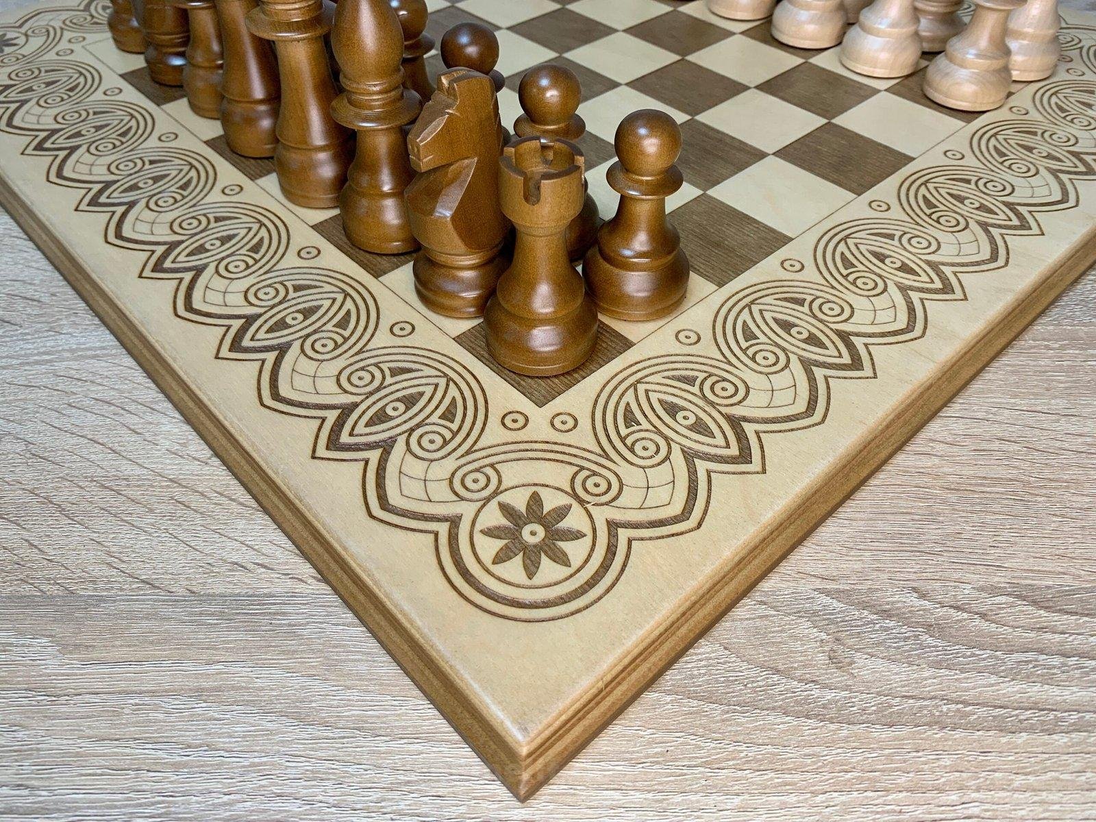 DESIGN: the chess board is decorated with carvings; the chess pieces are made in classic design; exclusively designed by our “Elen Elite” craftsmen.