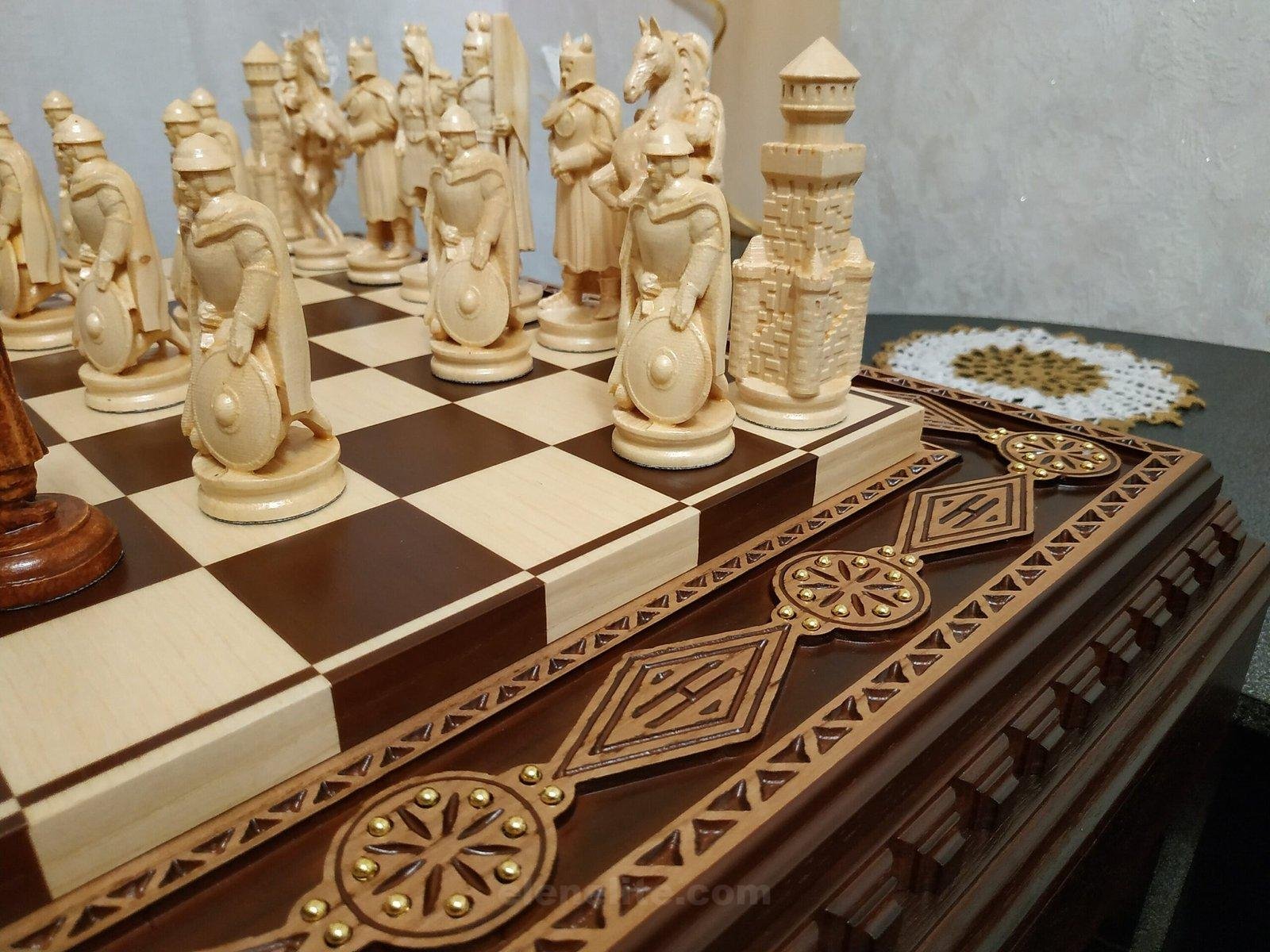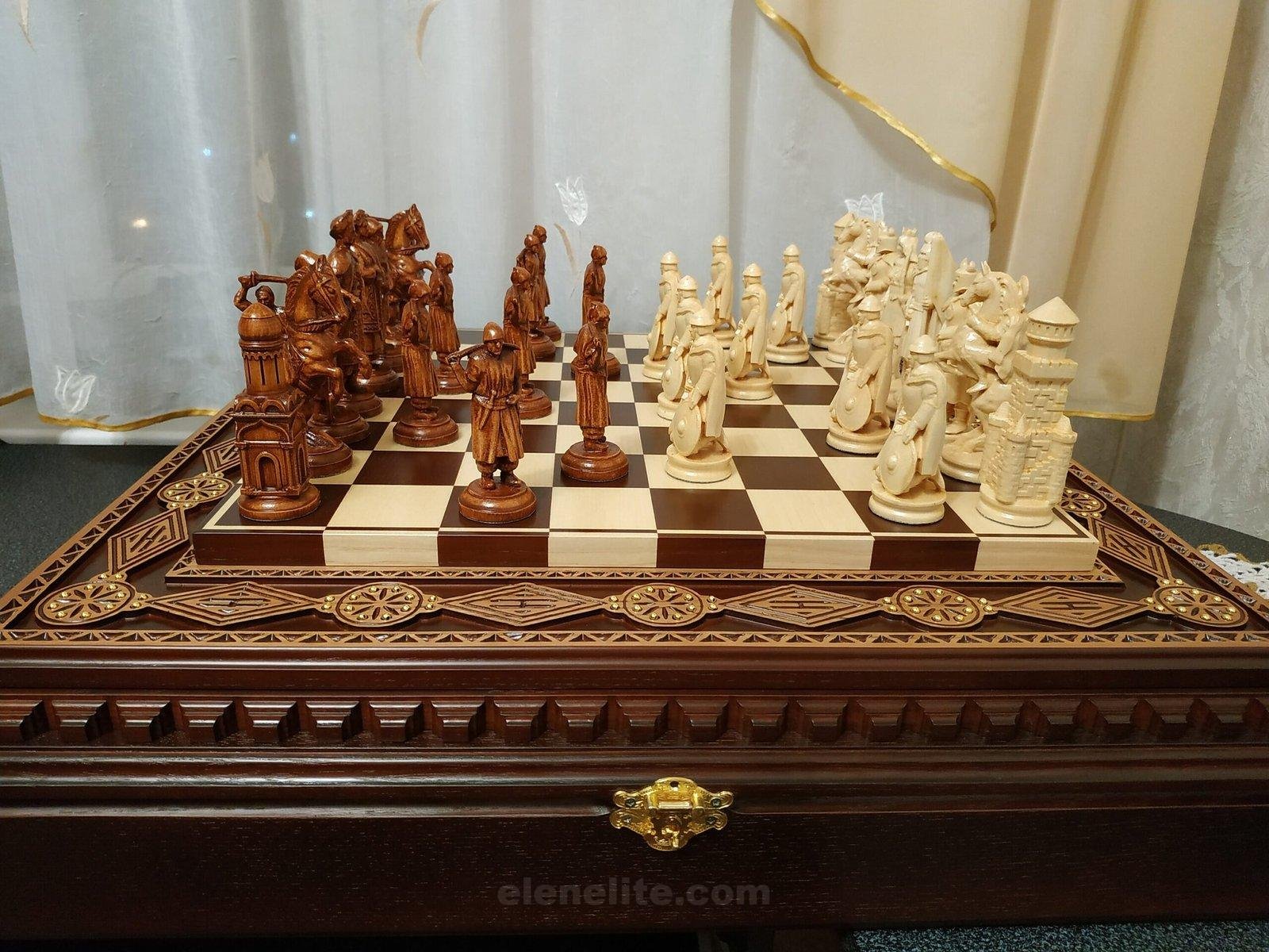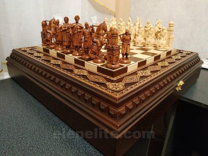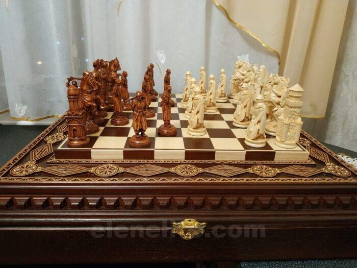 Chess Set: Chess Board with Storage + chess pieces “Knights” + “Cossacks”
