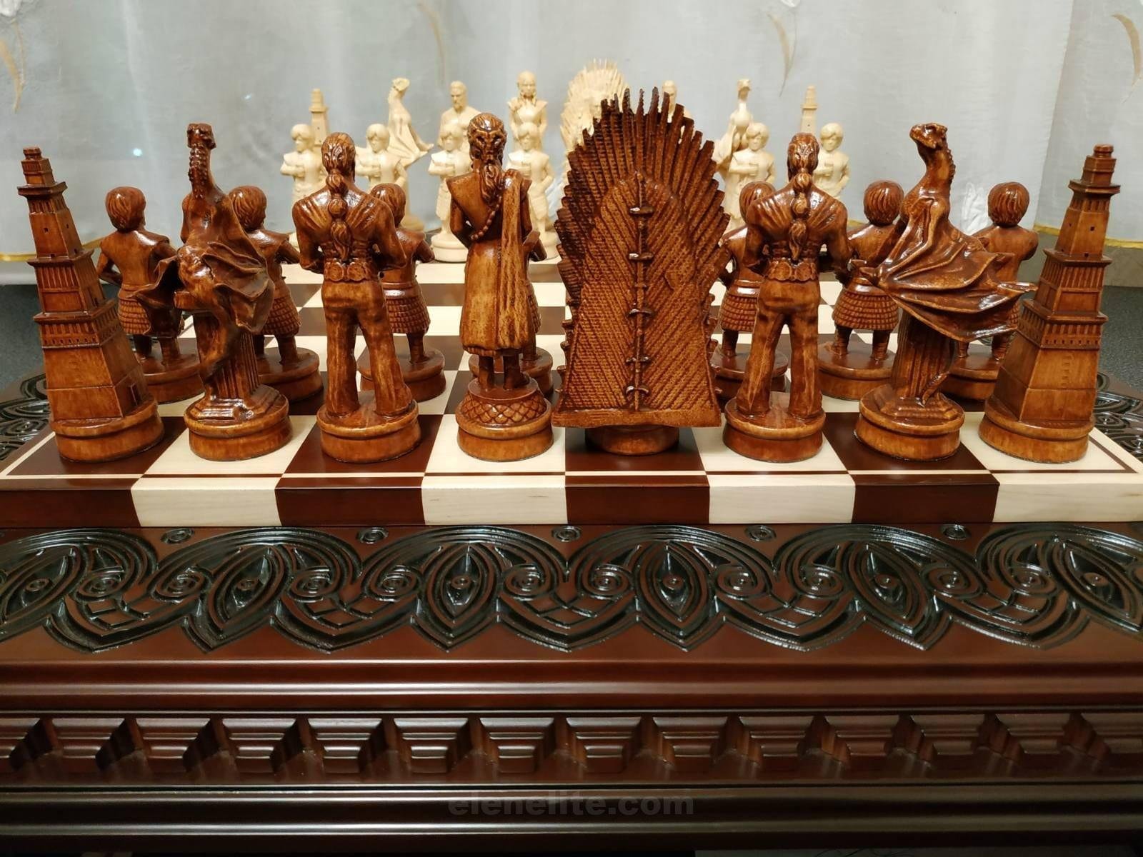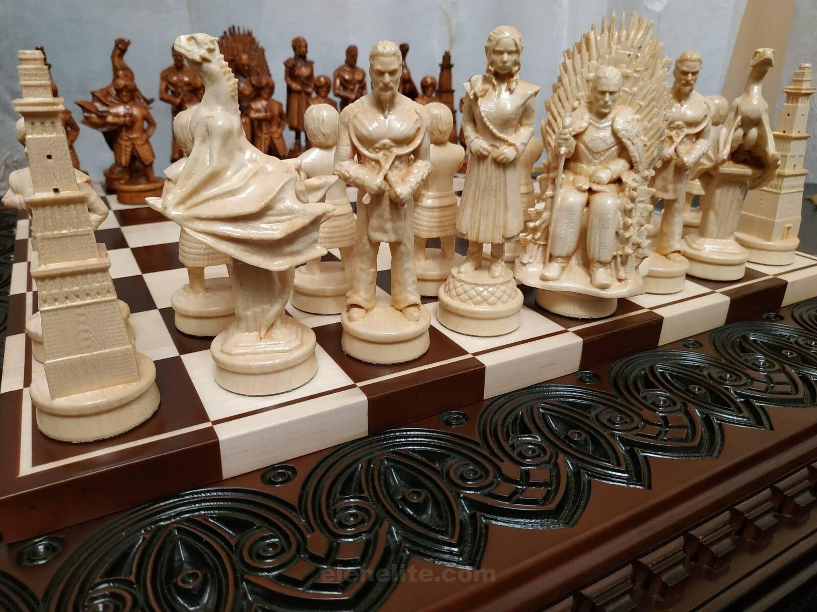 DESIGN: the chess board is decorated with carvings; 32 pieces – characters from the series “Game of Thrones”; exclusively designed by our “Elen Elite” craftsmen.