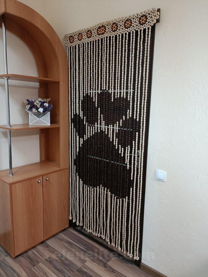 This hand-beaded curtain with a paw print is the perfect choice for animal lovers. Natural materials and a unique design will add coziness and personality to your home.