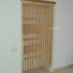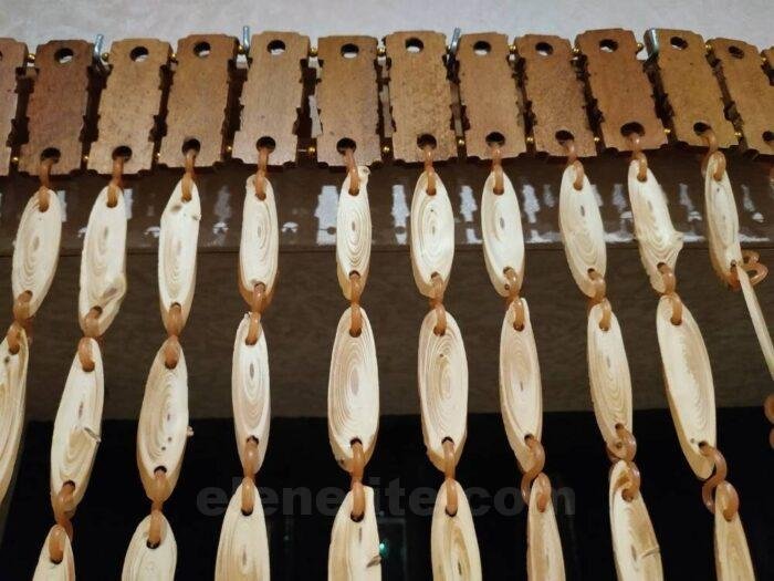 Handmade wooden curtain “Wooden Slice” in ivory and light brown. Available in spruce or pine, it’s a versatile décor piece for doors, windows, or room interiors.