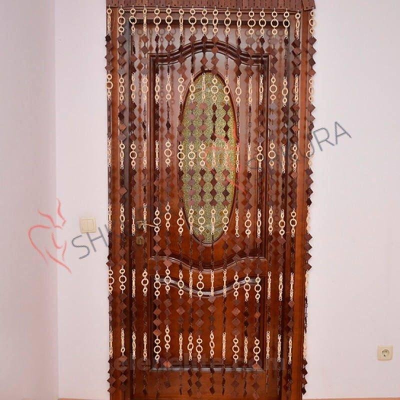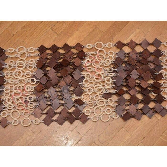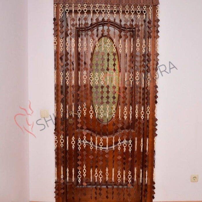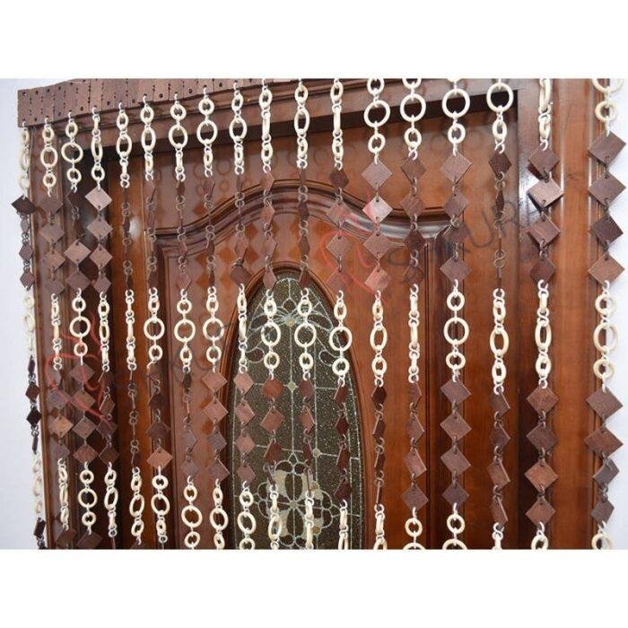 Wooden bead curtains with diamond-shaped and ring-shaped elements. Ideal as decorative curtains for doors, windows, or as a lightweight partition, they add texture and style to any interior.