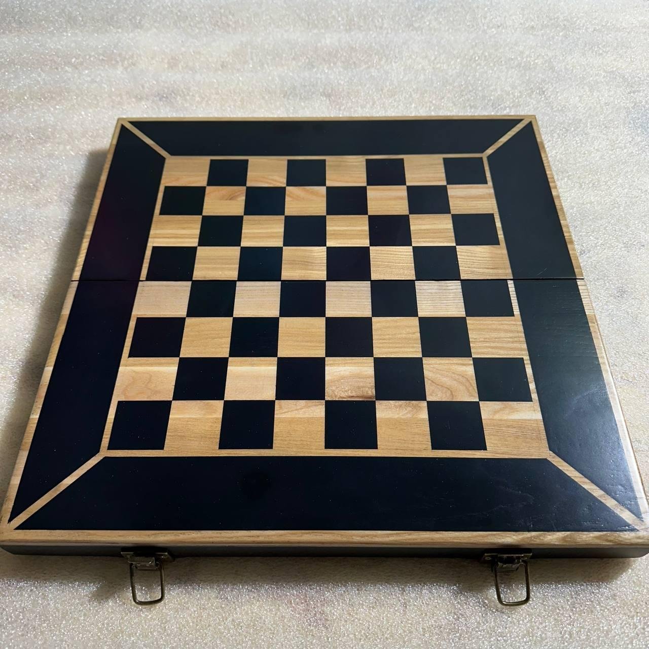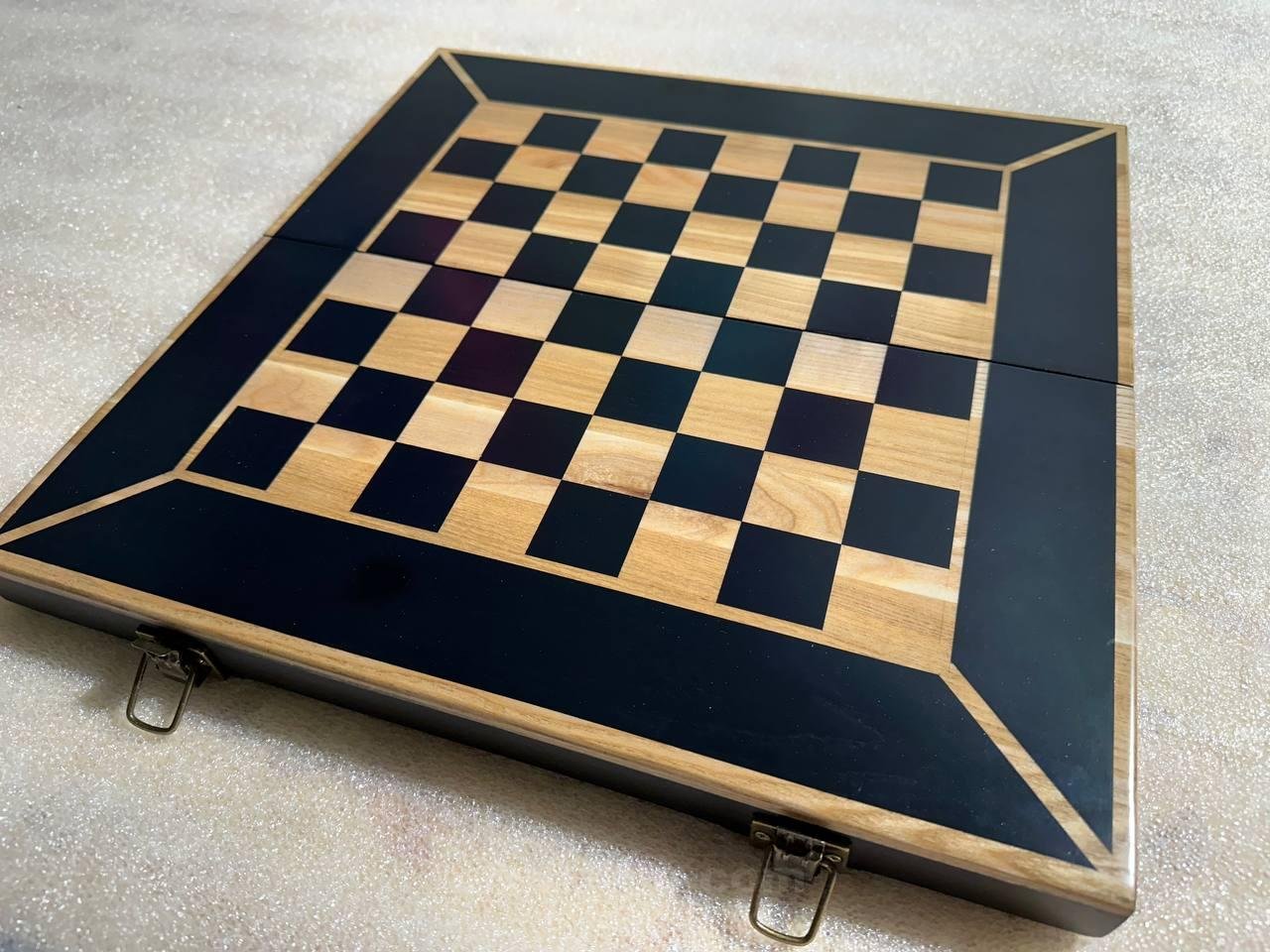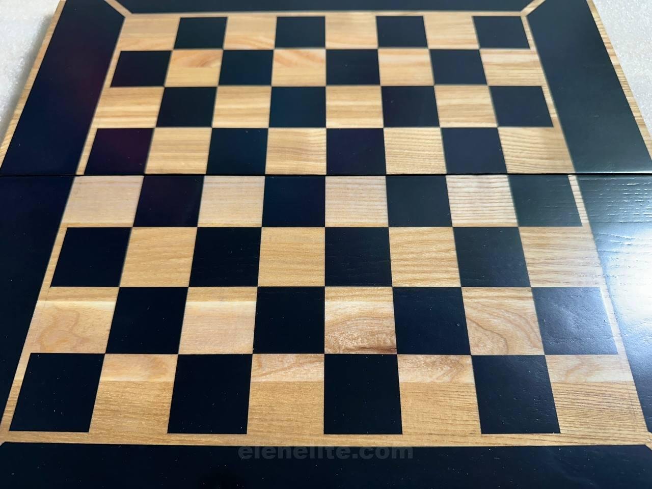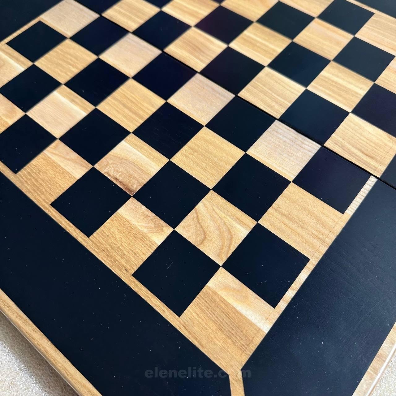 This elegant folding chessboard is crafted from natural ash and comes in a stylish black and beige color scheme that will blend harmoniously with any interior. Its folding design makes it easy to store and transport.