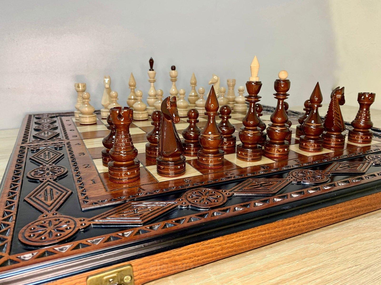 489 reviews for Wooden Chess set: Folding Board with Velvet-lined Storage + glossy pieces “Elite”