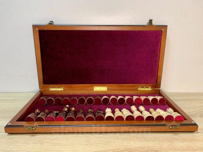 Wooden Chess set: Folding Board with Velvet-lined Storage + glossy pieces “Elite”