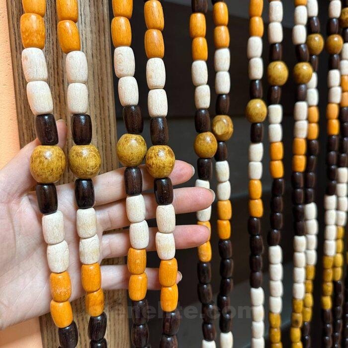 These natural wood curtains are made of beads strung on strong threads, creating an exquisite geometric pattern. We offer two design options: an arched shape for doorways and a full curtain for windows or partitions. This curtain will be a beautiful accent, perfect for a boho style, adding a touch of style to homes, rooms, and patios.