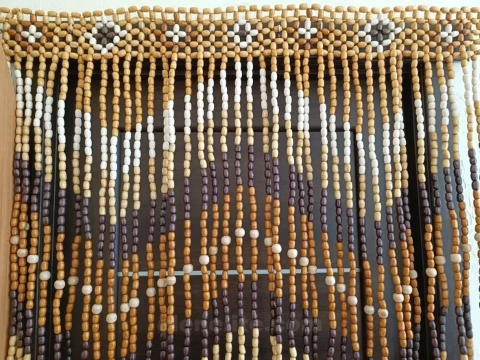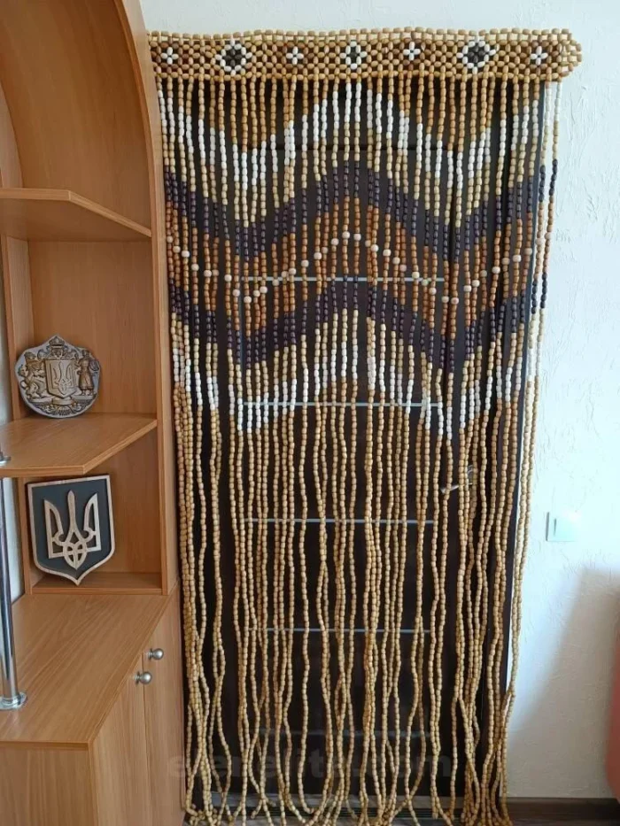 These natural wood curtains are made of beads strung on strong threads, creating an exquisite geometric pattern. We offer two design options: an arched shape for doorways and a full curtain for windows or partitions. This curtain will be a beautiful accent, perfect for a boho style, adding a touch of style to homes, rooms, and patios.