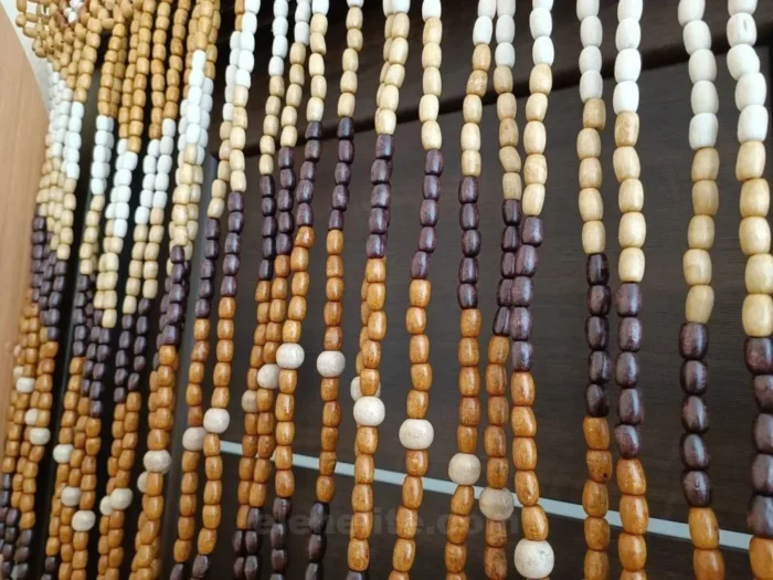 A handmade curtain made of wooden beads. Lightweight and natural, it’s perfect for doorways or windows, creating a harmonious and stylish solution for your home.