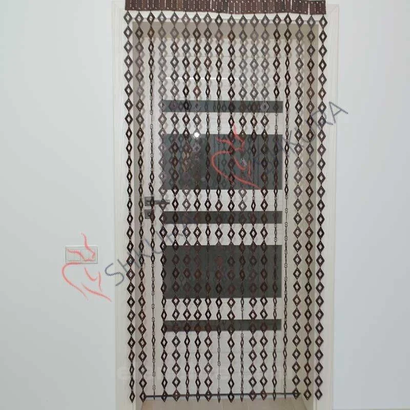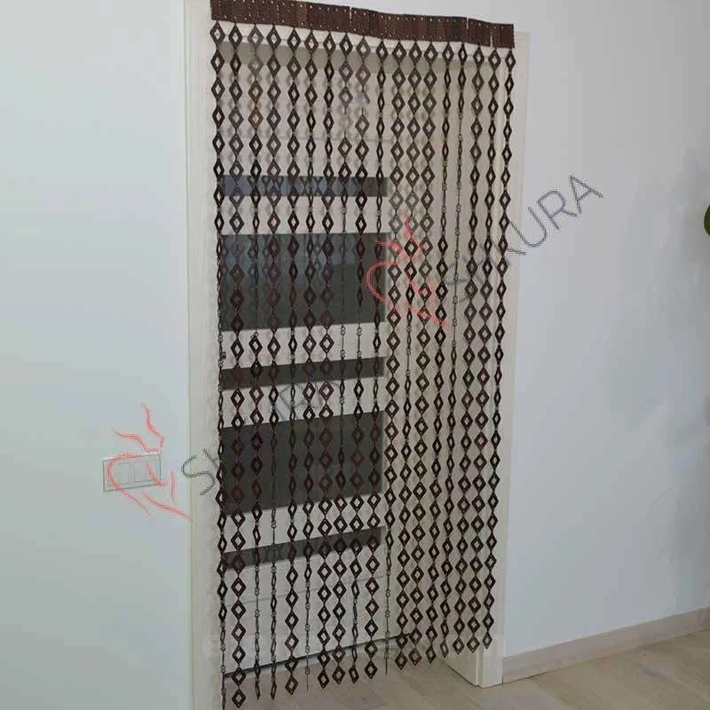 Handcrafted dark wood curtain with a diamond pattern. A versatile decor for doors, windows, and rooms in boho or eco styles. Available in all sizes!