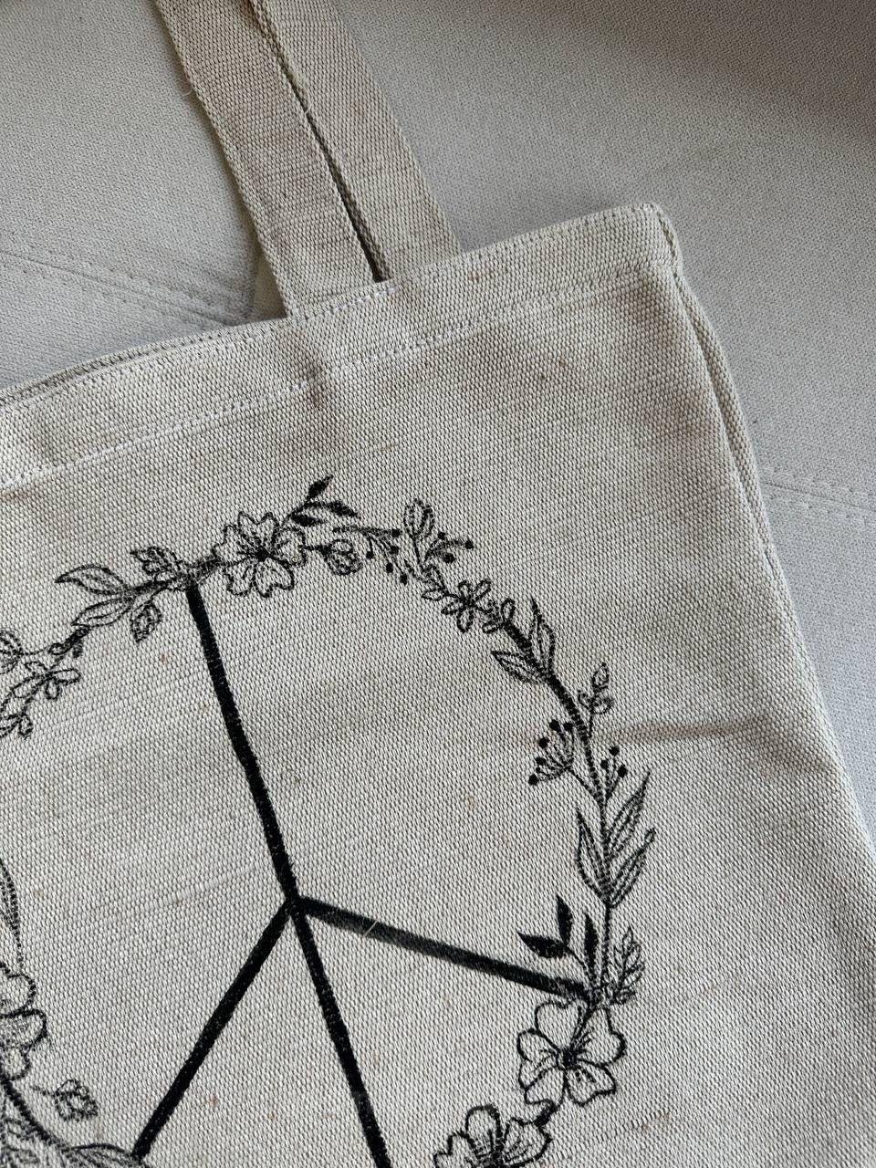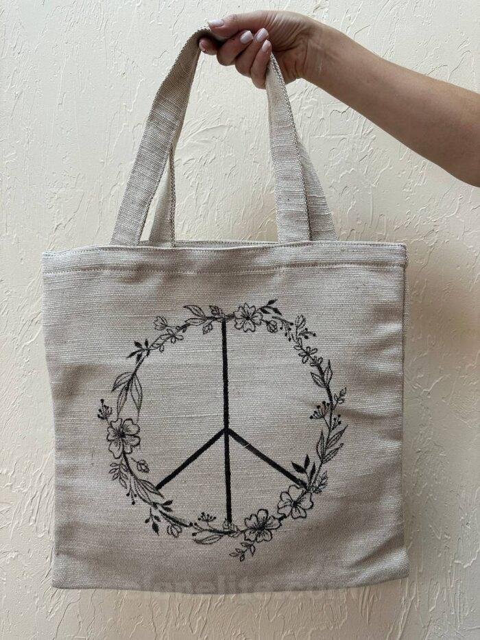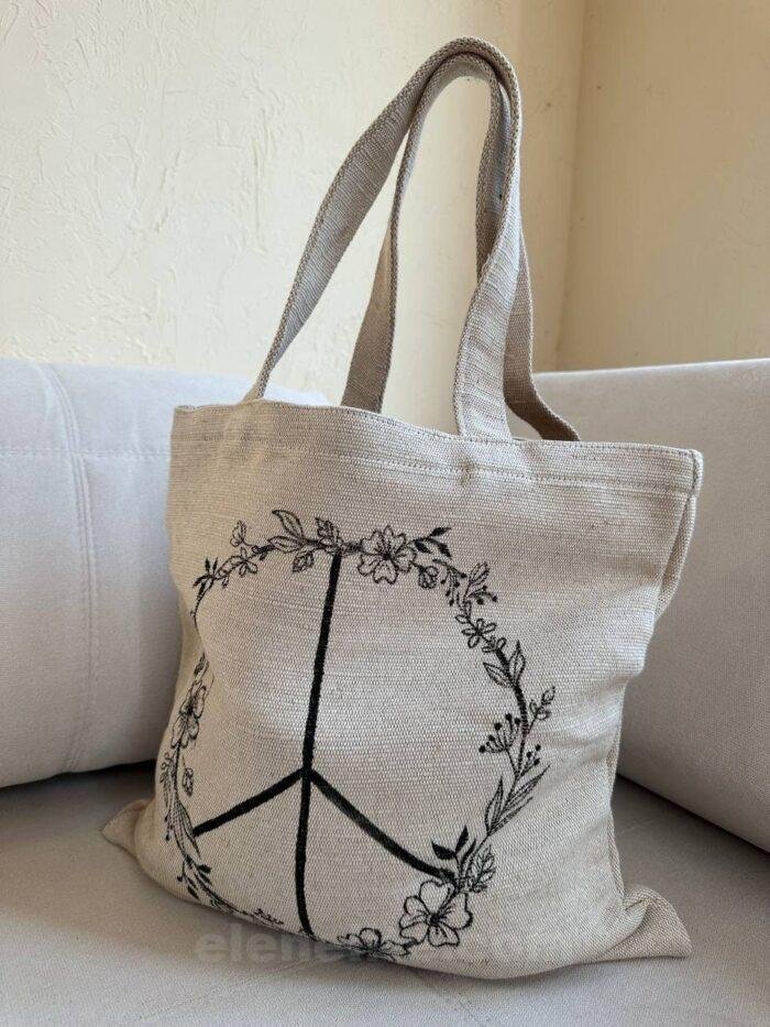 Shopping bag made of heavy dense fabric made from natural yarns: linen, hemp, jute or so-called semi-linen (linen and cotton).