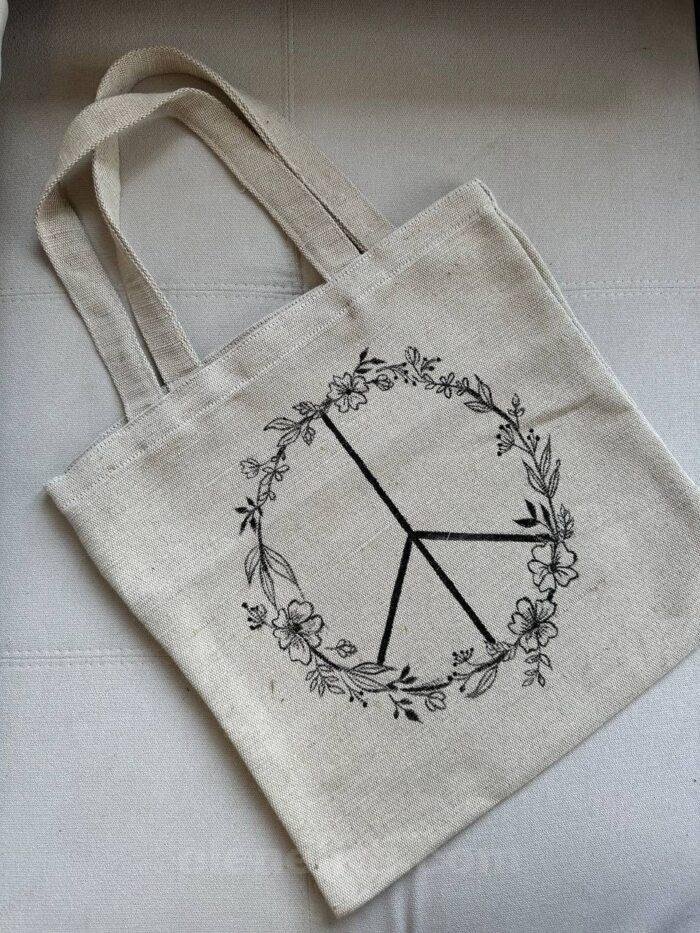 Pacific Shopping Bag, Hand Painted Natural Linen Fabric, Grocery Bag, Minimal Beach Bag, Reusable Tote Bag, Shopper Bag for Woman, Girls