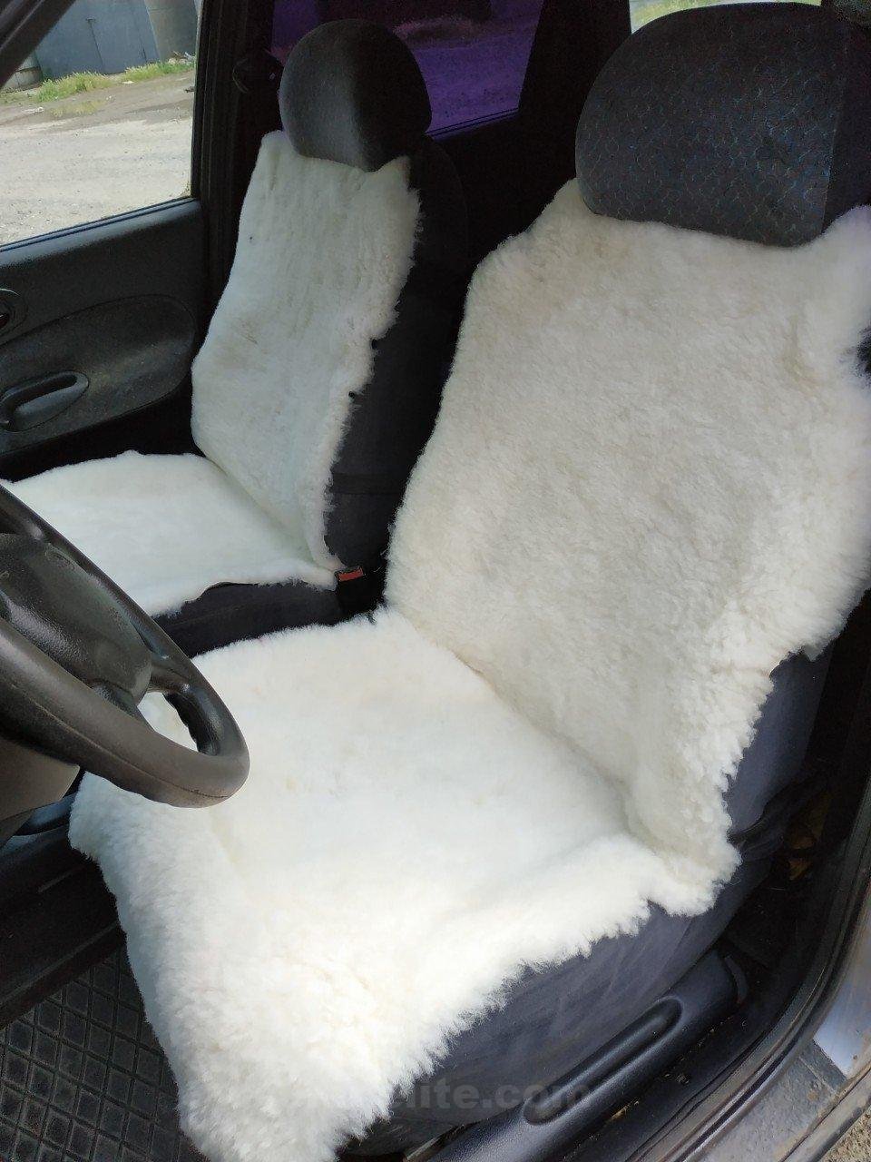 Sheepskin Cover for car seat, BEIGE (light yellow), WHITE color, universal genuine sheepskin Size 43.5 / 19,5 inches -110 / 50cm..