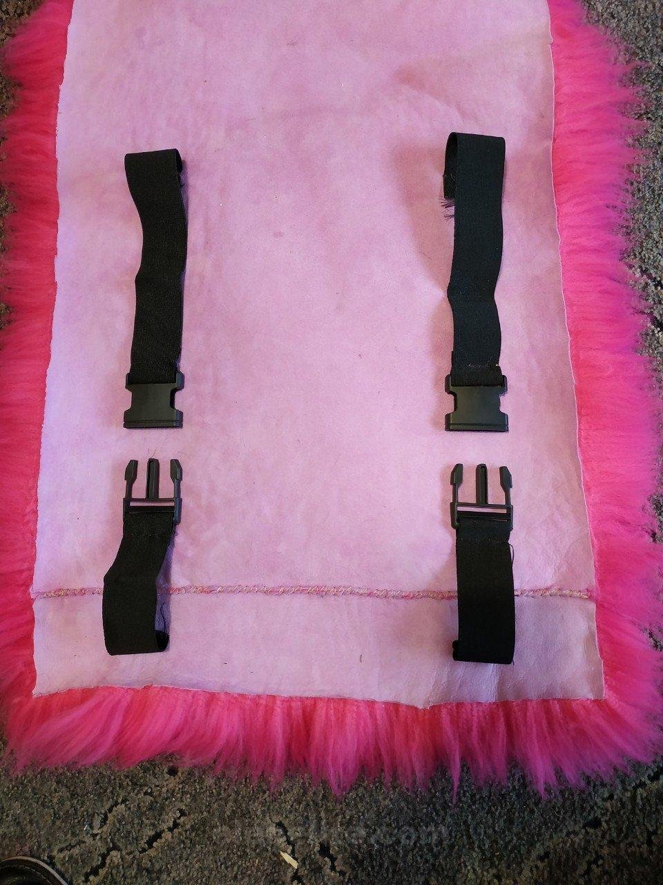 The sheepskin is absolutely beautiful! The color is rich and gorgeous. I’ll need to make some small adjustments to the straps for it to fit my classic car, but that’s not unexpected. Thank you!