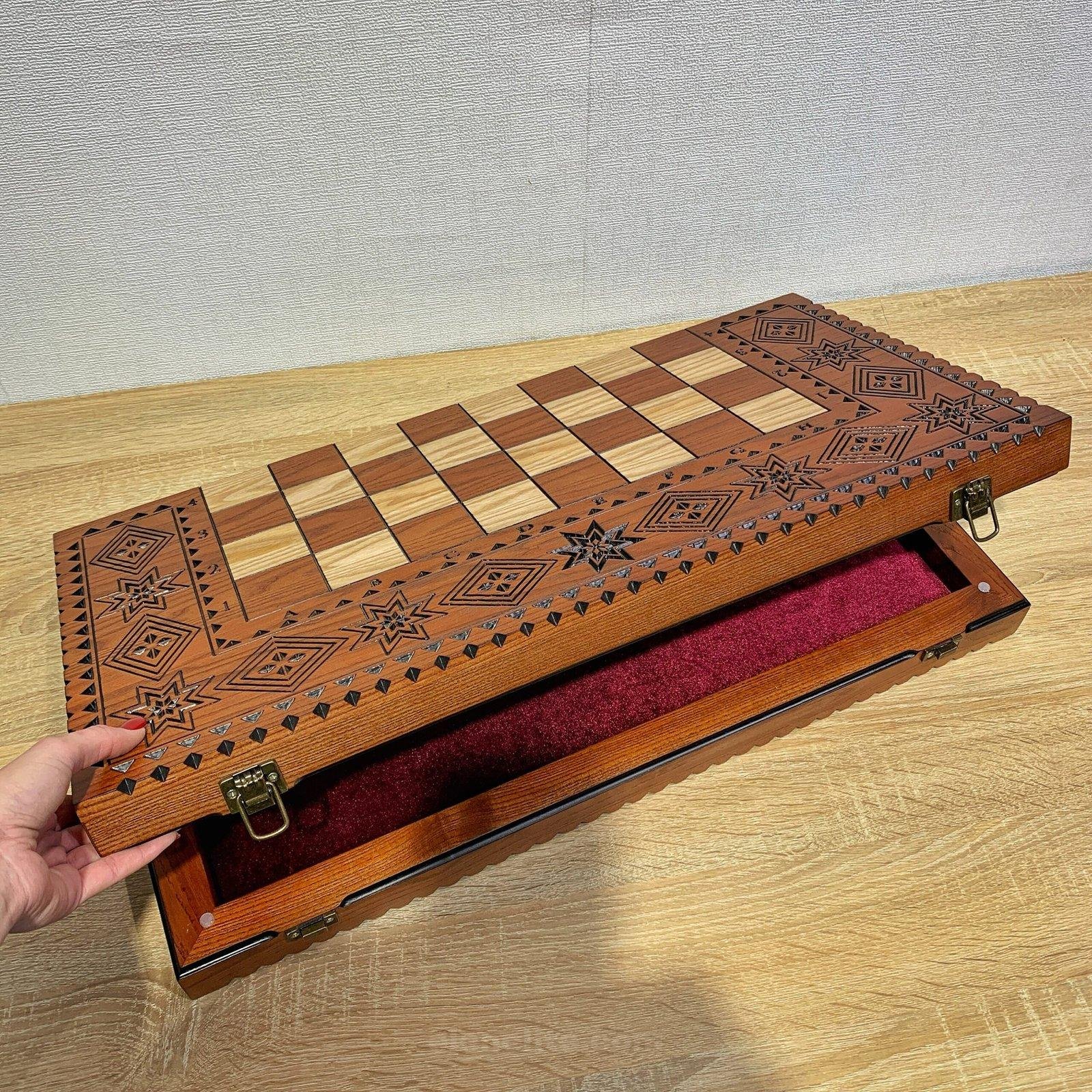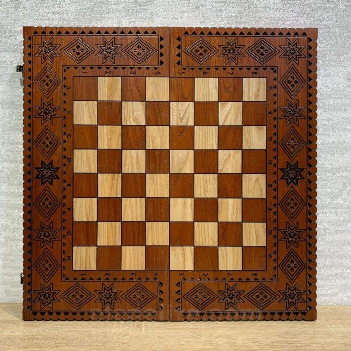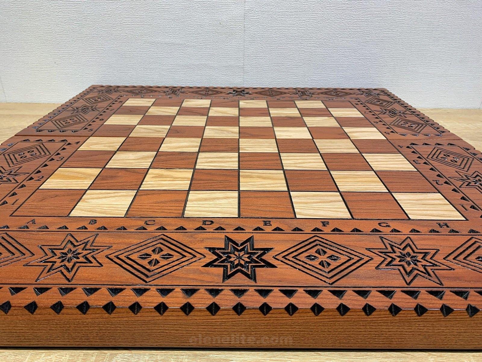 DESIGN: folding board with velour storage, carved patterns of eight-pointed stars and markings; exclusively designed by our “Elen Elite” craftsmen.