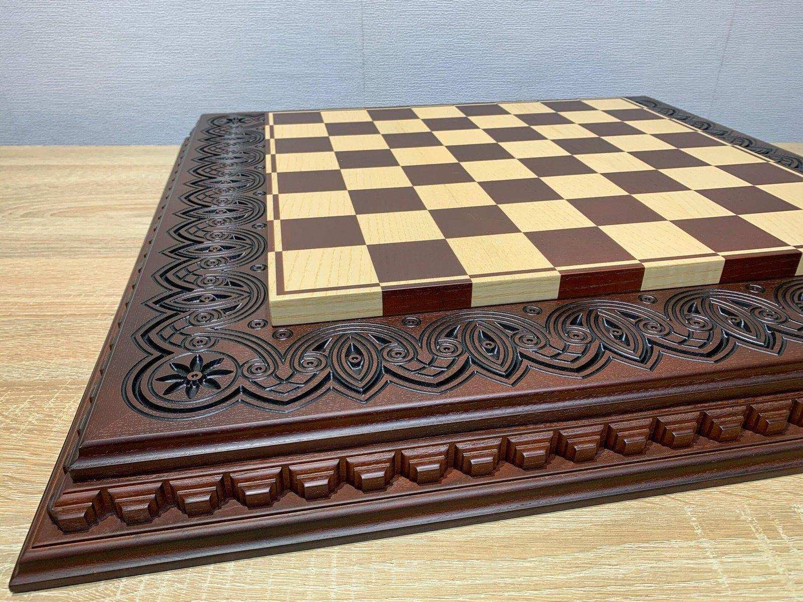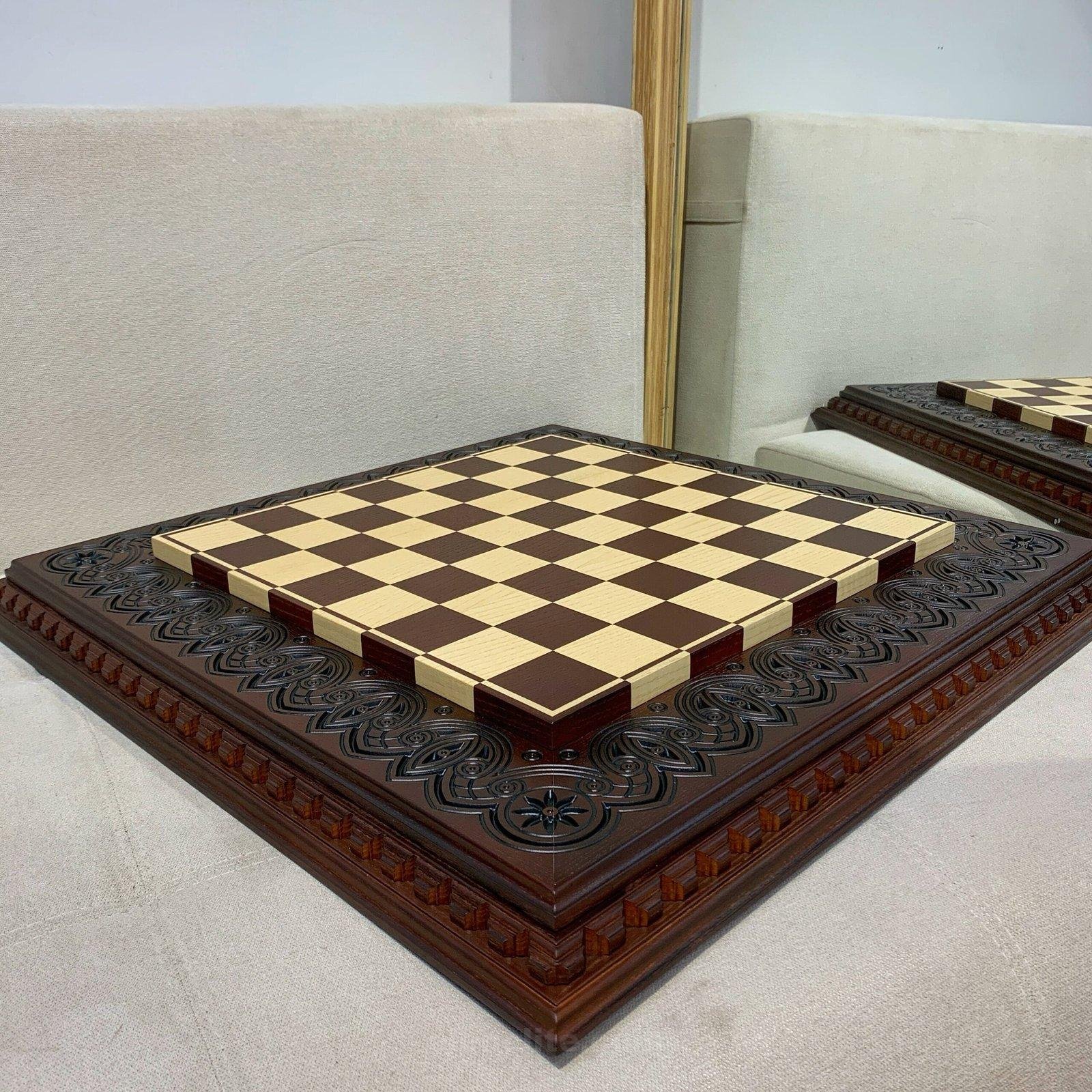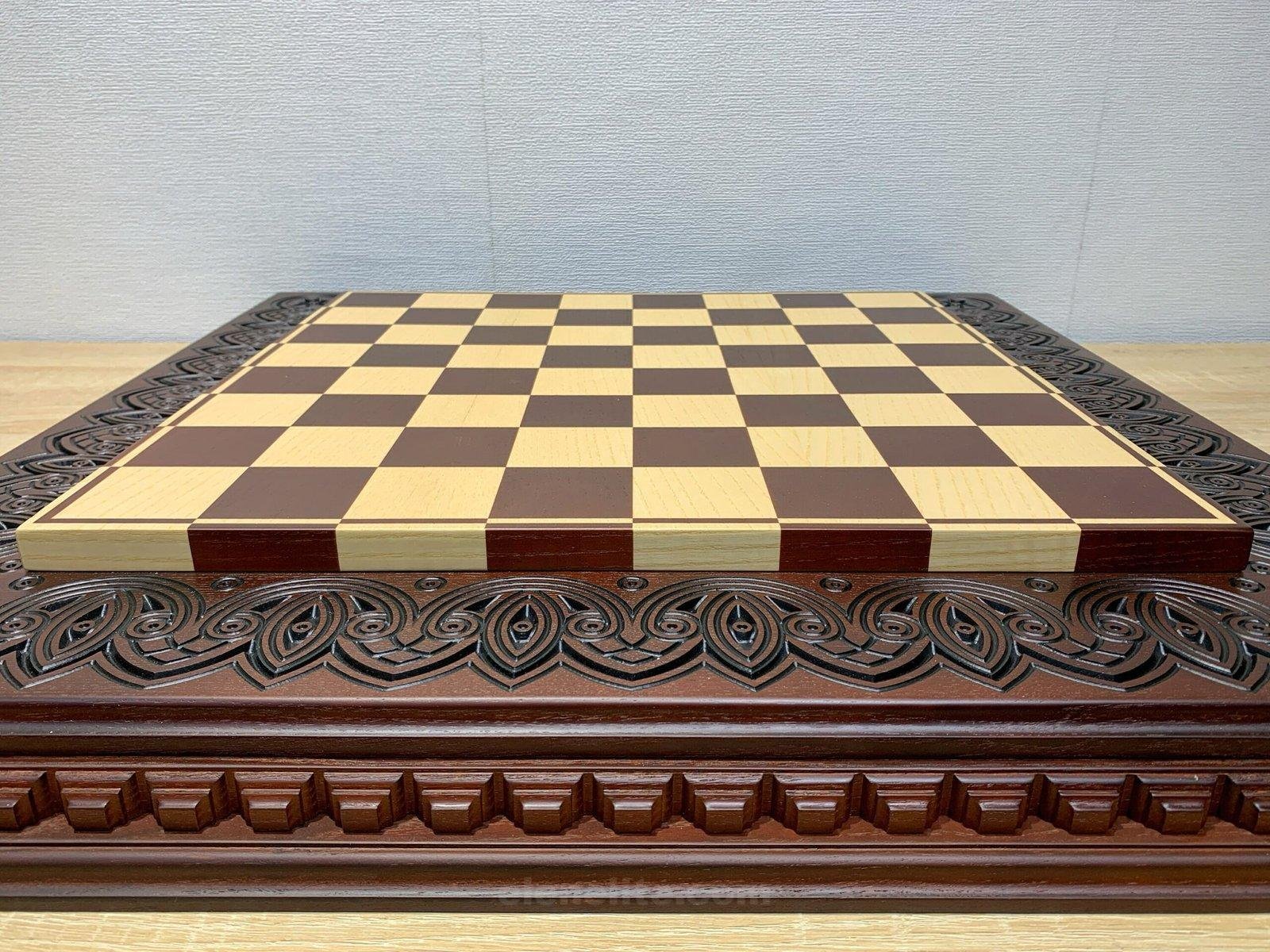 A luxurious ash chess board with exquisite hand carving and a deep brown shade – highlight your taste and playing style.