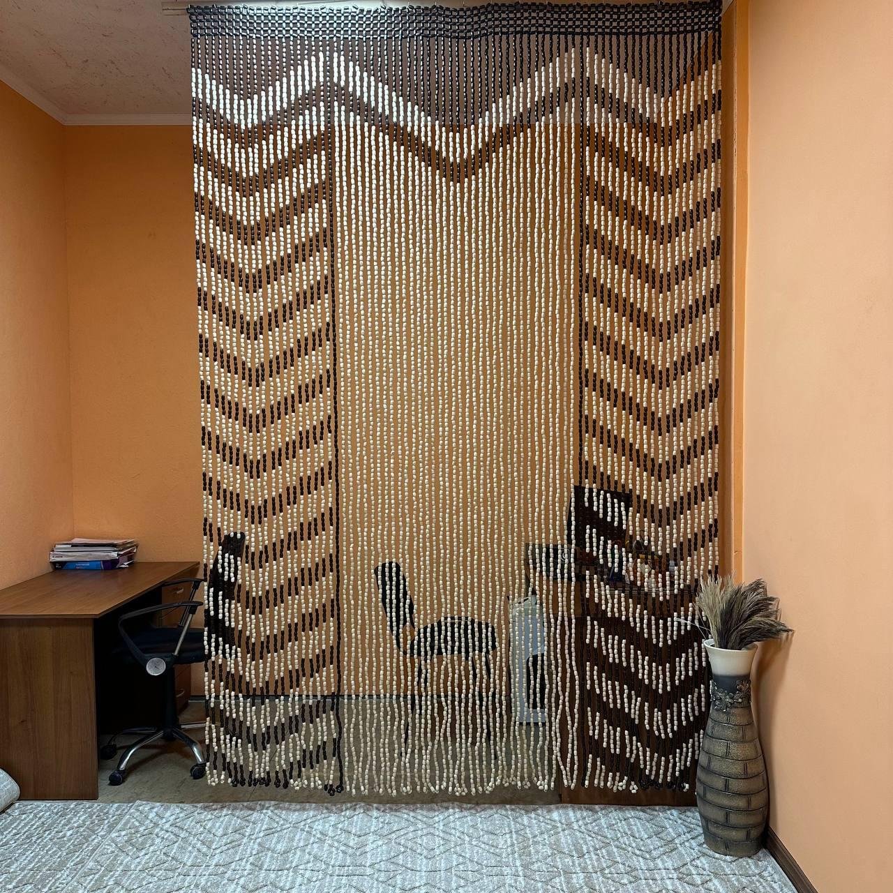 These natural wood curtains, handcrafted with a beaded design, embody a boho-chic aesthetic. Versatile in use, they can be used as curtains for doors and windows, as lightweight room dividers, or as a sophisticated interior element. They will make a stylish accent in the living room, bedroom, office, or patio, seamlessly blending with both modern and ethnic interiors.