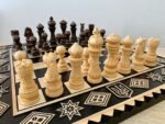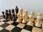 MATERIAL: chess board – solid ash wood; chess pieces – maple wood; each chess piece has a velvet backing for easy sliding on the board and protection from scratches