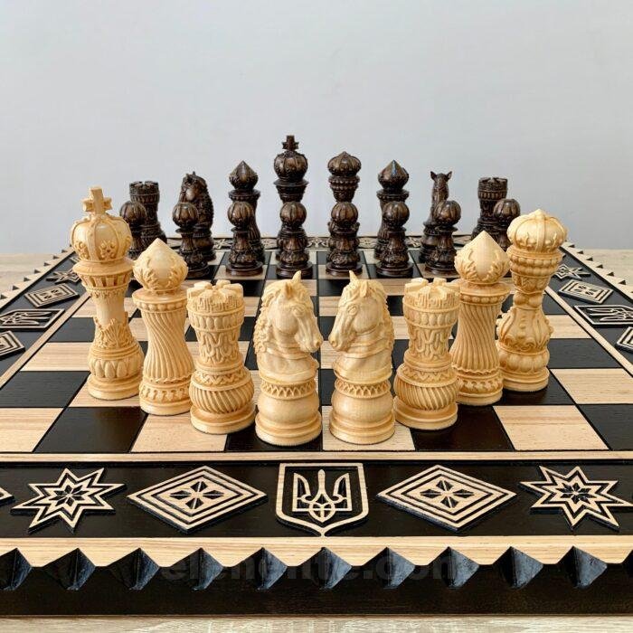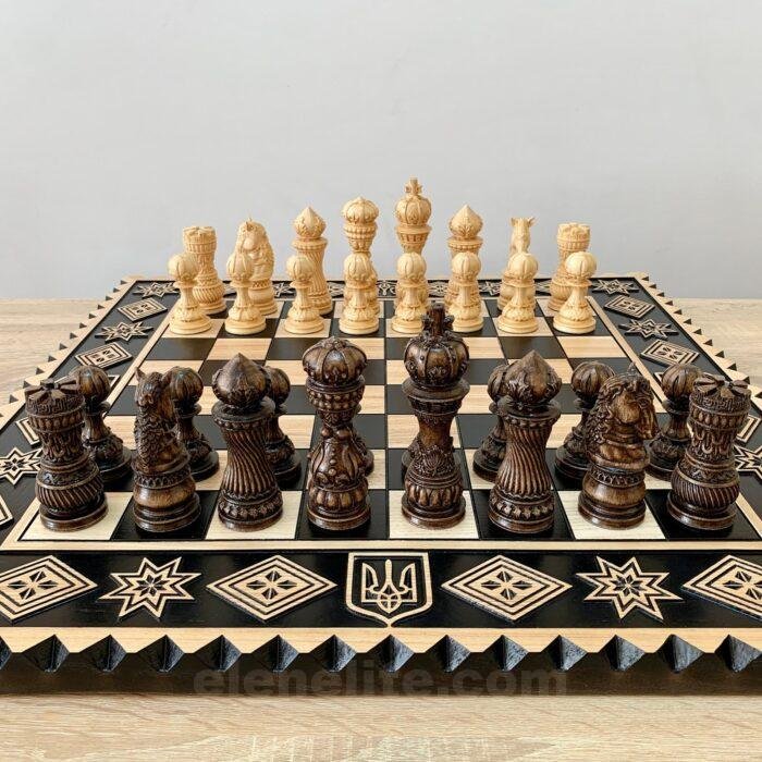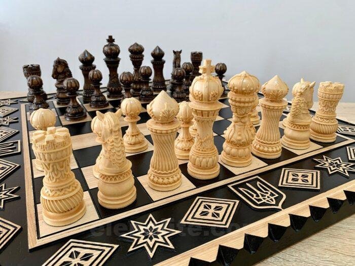 DESIGN: the board is decorated with carved patterns of eight-pointed stars and Ukrainian symbols; exclusively designed by our “Elen Elite” craftsmen.
