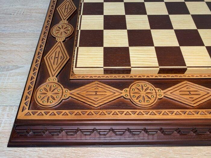 Chess board “Royal Classic” with artistic carving and delicate bead decoration — a perfect blend of style, originality, and craftsmanship.